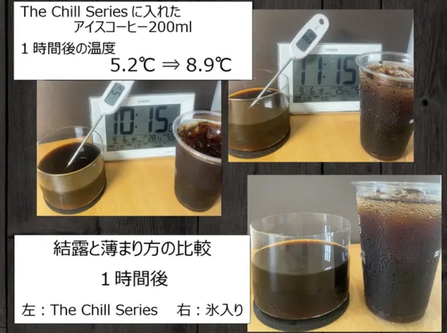 The Chill Series(左写真)を使ったドリンクが飲食店で出てきたら、氷で薄まらず最後までお洒落に美味しく飲めて最高です。