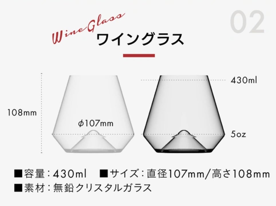 The Chill Sereisのワイングラスは、グラスの中央に膨らみがあり、口径がややすぼまっています。そのため、香りが凝縮され、グラスを傾けると喉の奥に向かって直線的に液体が流れる構造です。