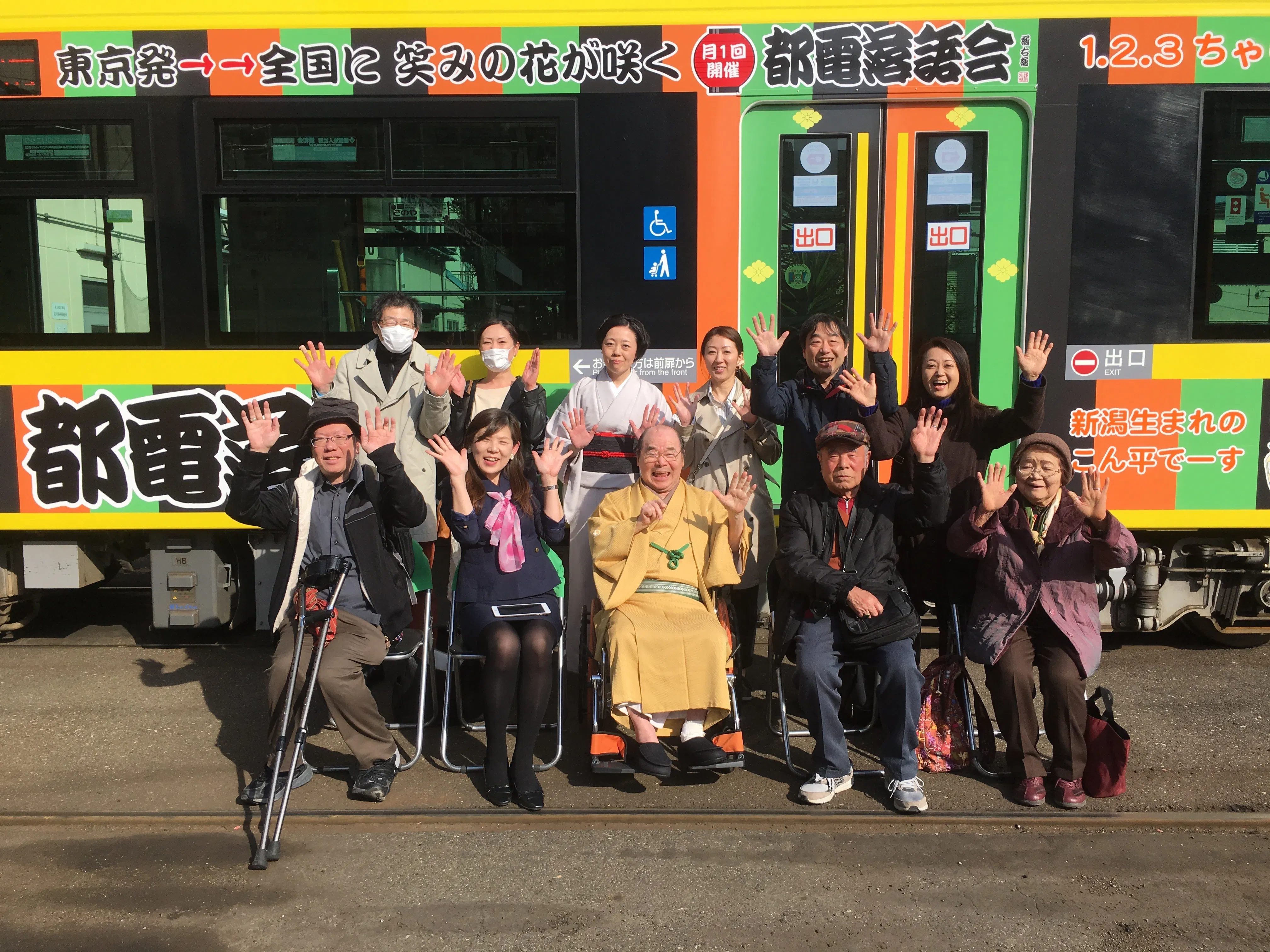 弊社が初めて企画をした「都電落語会」は、東京都内で唯一運行する路面電車「都電荒川線・東京さくらトラム」を毎月1回貸し切りにし、都電に揺られながら伝統芸能である落語を味わう、新たな移動型の寄席です。
