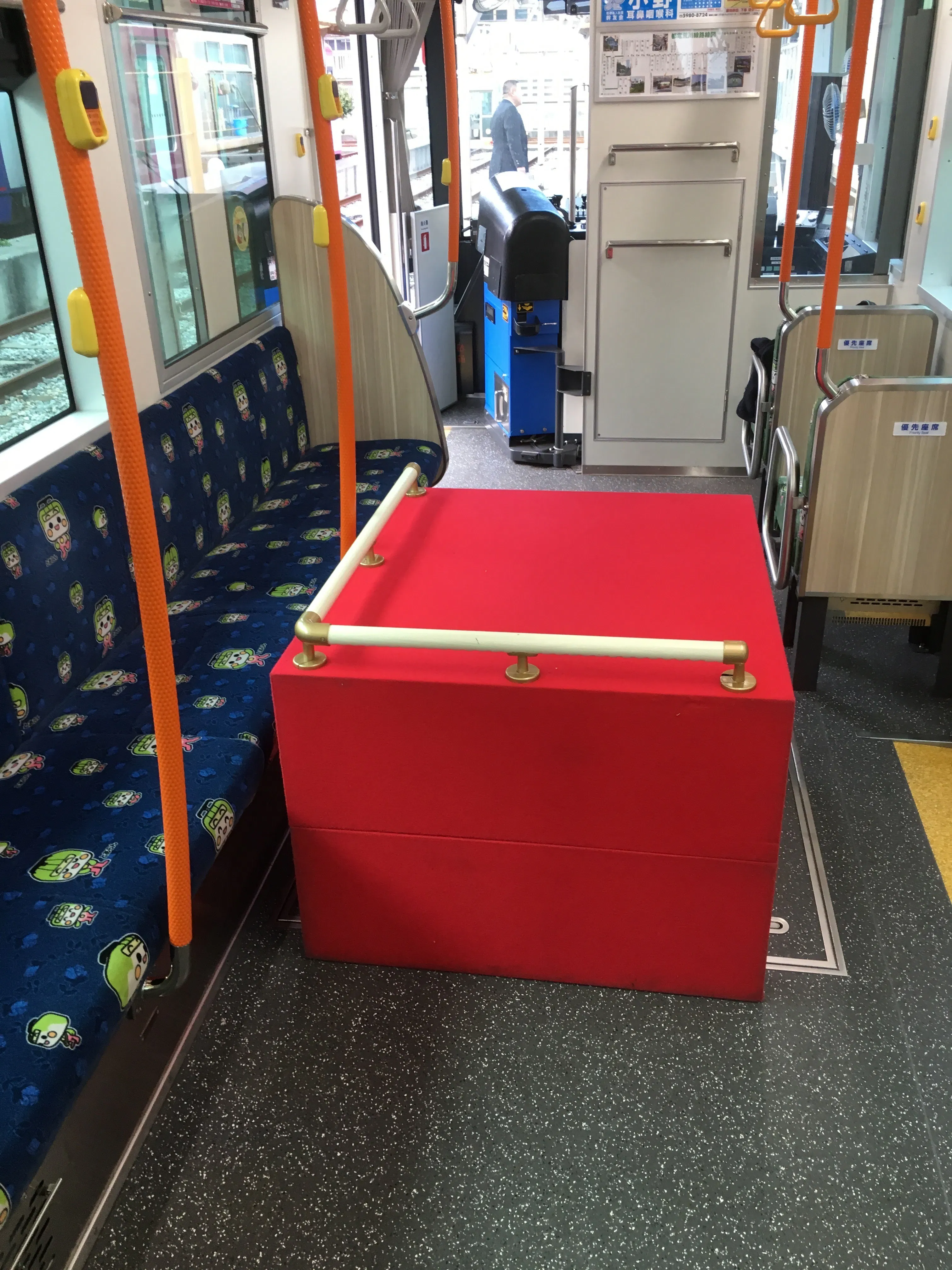「都電荒川線・東京さくらトラム」に、ひと際目立つ3色歌舞伎幕ラッピング。車内が月に1度、寄席の空間に生まれ変わります。