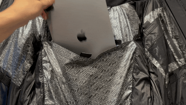 従来のジャケットで同等の保温性を保つには、1㎏以上の重量を必要としていたことに対して3IN1エアロゲルジャケットはわずか2mmのエアロゲルを採用しており、厚さは一般のグースダウンの1/3となります。