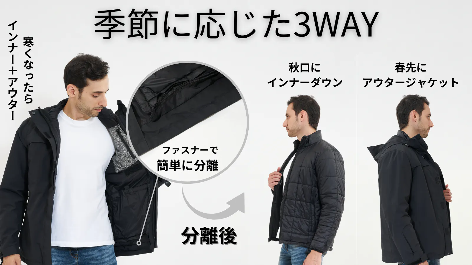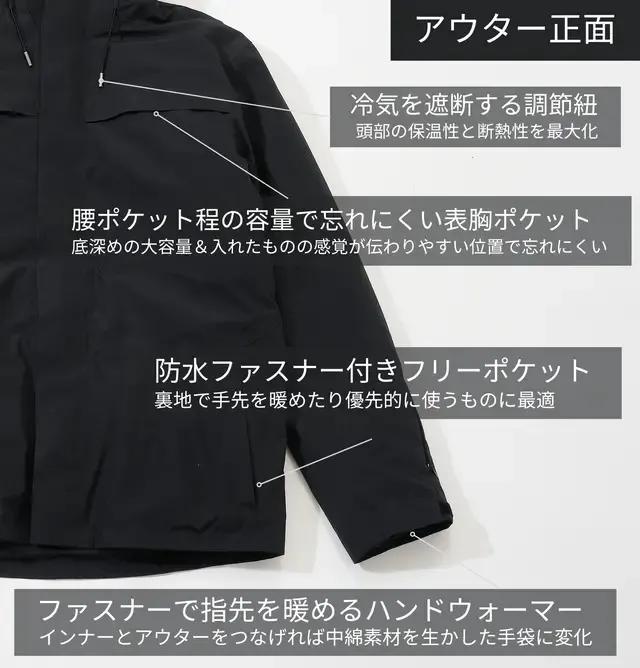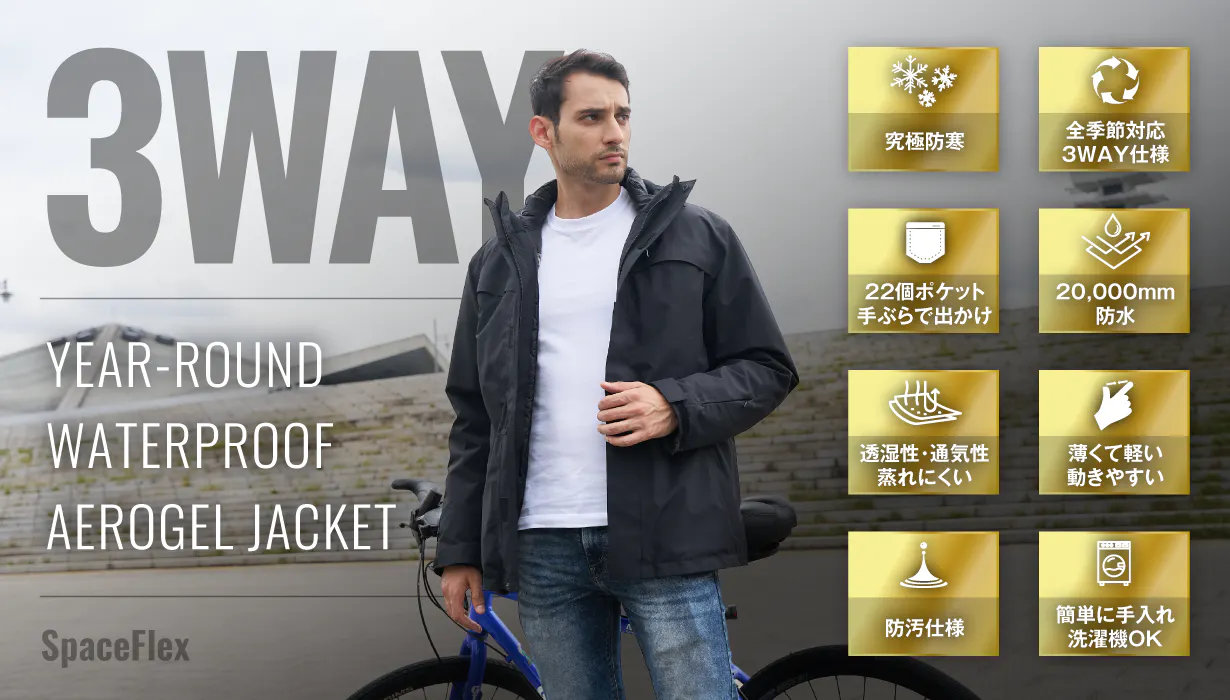 防寒だけじゃない3WAY仕様!春にも3IN1エアロゲルジャケット「SpaceFlex」