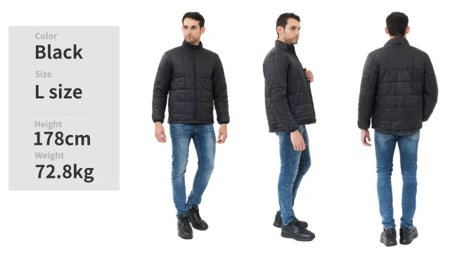 ※写真左側の人は厚さ45mm以上、重さ約1.3kgのダウンジャケット着用。※同シリーズのエアジャケットを用いて、実験をしています。