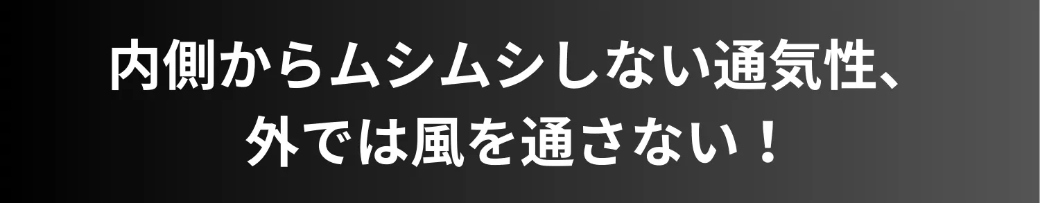 服の表面には風を通さない防風機能が備えているので、バイクや自転車などで風に強く当たる方にお勧めです。