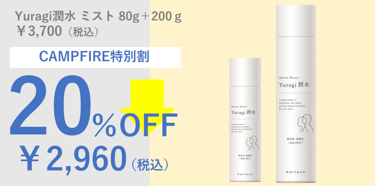 2024/01/21 12:00こんばんは、カルテックです。いよいよ明日プロジェクト終了となります。今回本当におトクにお試しいただけますのでぜひご検討ください!〇Yuragi潤水ミスト 200g×4本 通常¥9,600がなんと40%OFFで¥5,760! ※¥3,840おトク!〇Yuragi潤水ミスト 80g×4本 通常¥5,200がなんと40%OFFで¥3,120! ※¥2,080おトク!プロジェクトへの支援&応援&シェアいただけるとありがたいです。よろしくお願いいたします。 もっと見る