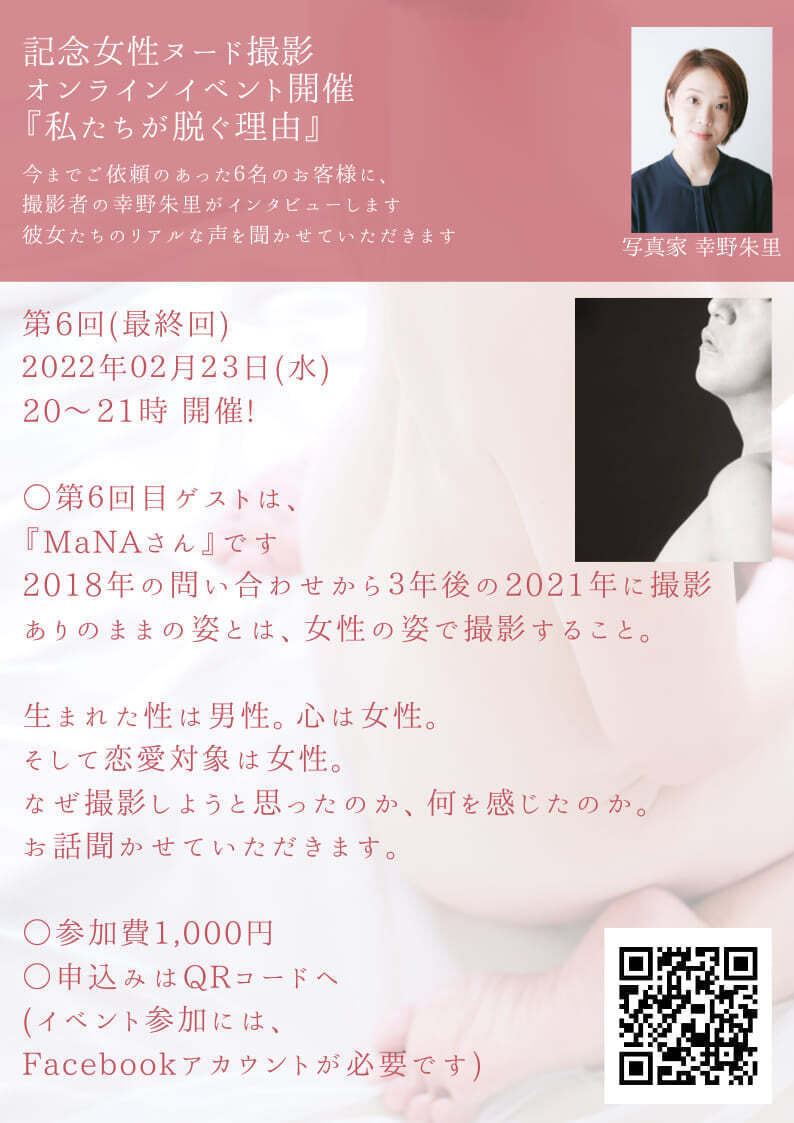 【記念ヌード撮影を経験されたお客様×写真家幸野朱里】 オンラインイベント開催致しました