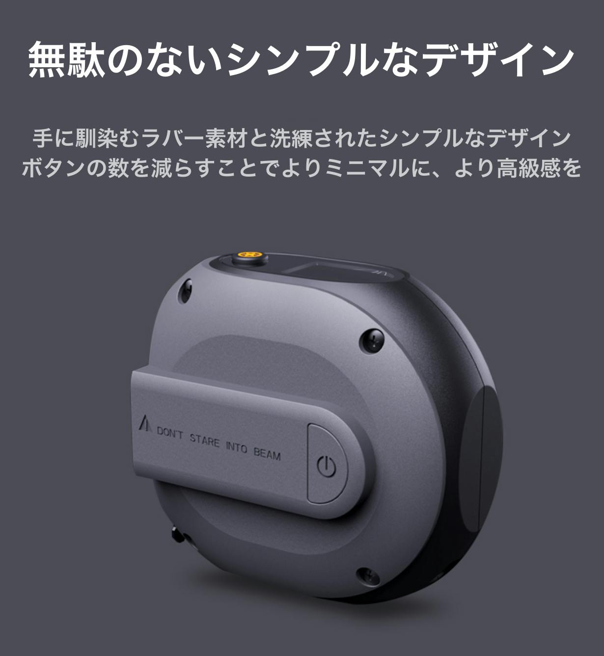 ①スイッチボタンを長押しして電源&レーザーをONにします。