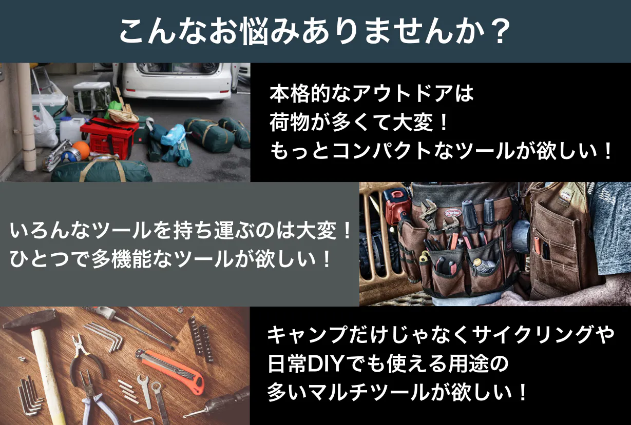 アウトドアはどうしても荷物が多くなりがち。そんな時にコンパクトで機能が多いマルチツールがあれば、もっと手軽にアウトドアを楽しめるのではないか。