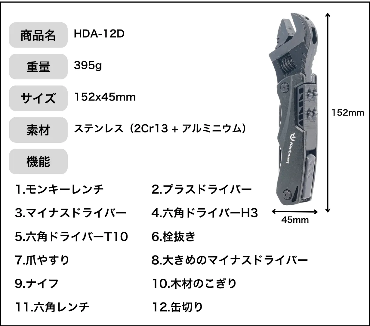 12種類の異なる機能をひとつにまとめた便利なマルチツール!