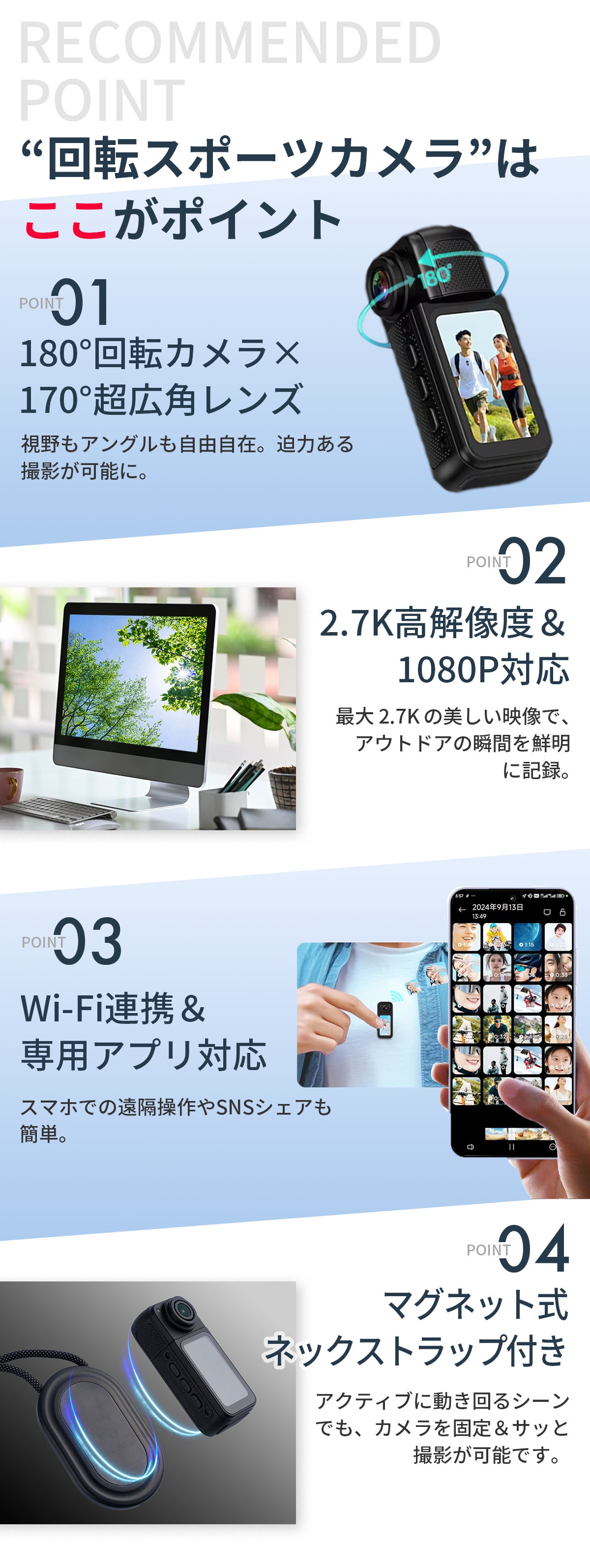 2.7K高解像度!170°の広角×180°回転でダイナミックな映像体験を実現する新世代スポーツカメラ