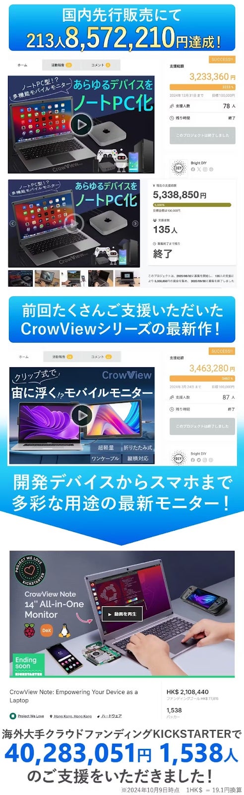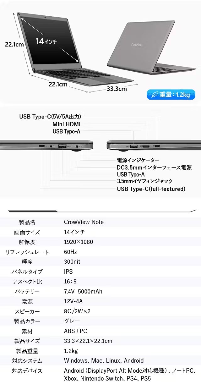 第2弾決定!キーボード&タッチパッド一体型多機能モバイルモニターCrowView Note
