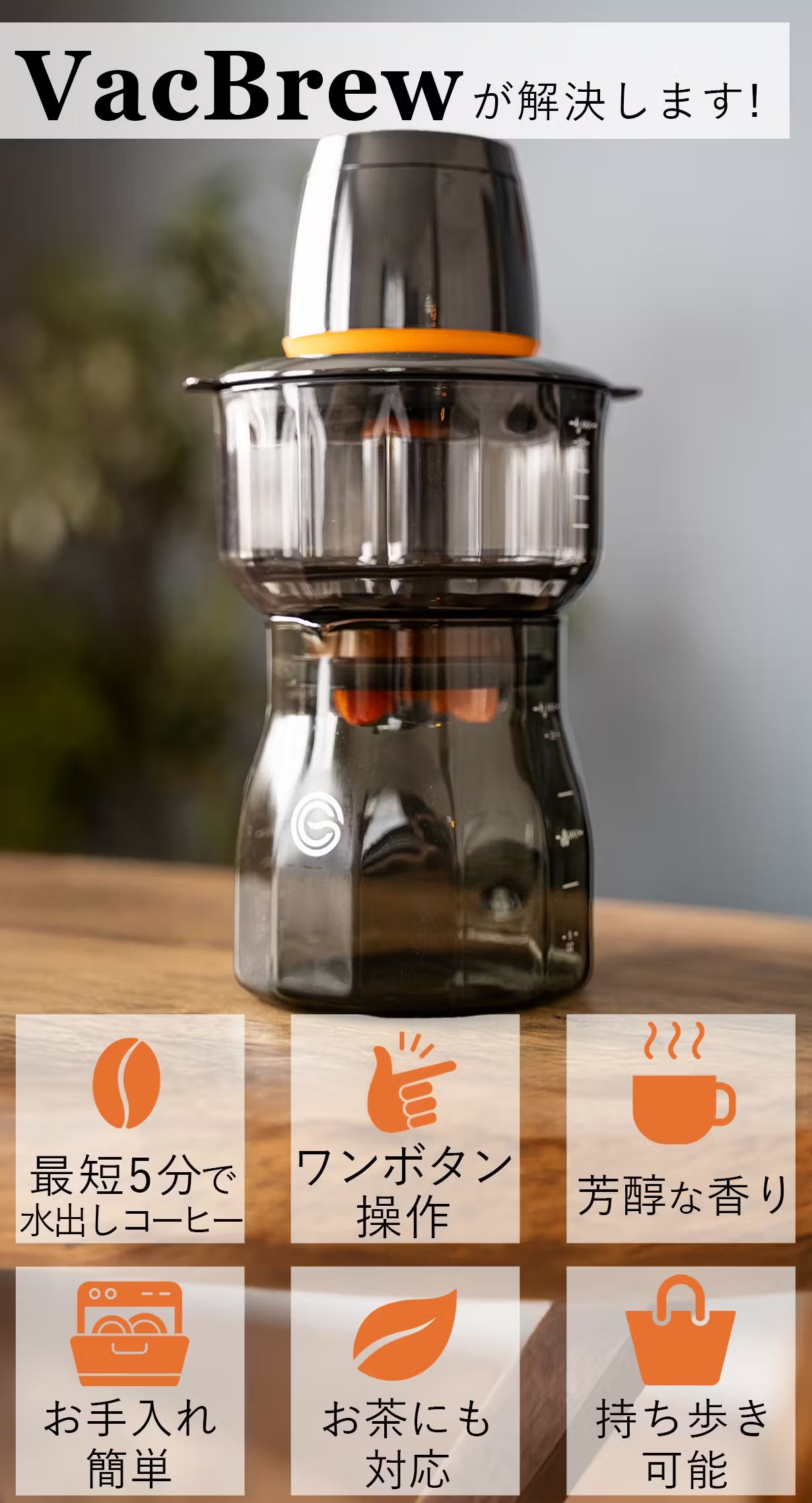 忙しい朝にも!食洗機対応の真空抽出で、本格コールドブリューが5分で飲める