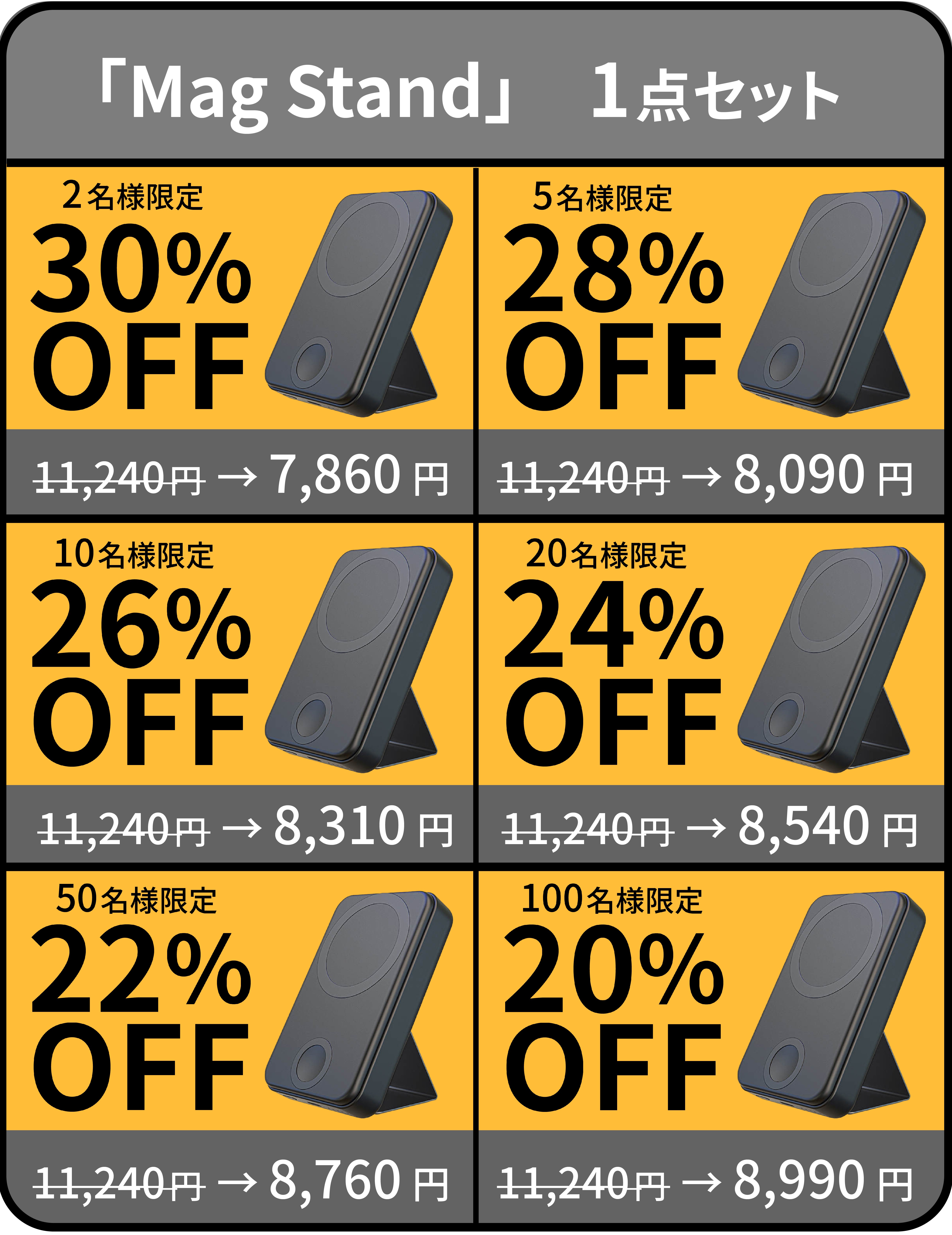 仕事中や外出先でも、ケーブルも充電器も必要としないスマートな充電スタイルを実現する「Mag Stand」で、あなたの生活に充電の新しいカタチをお届けします。