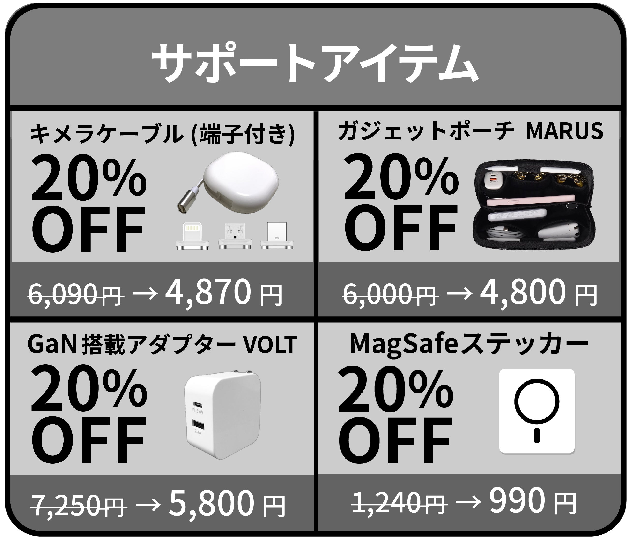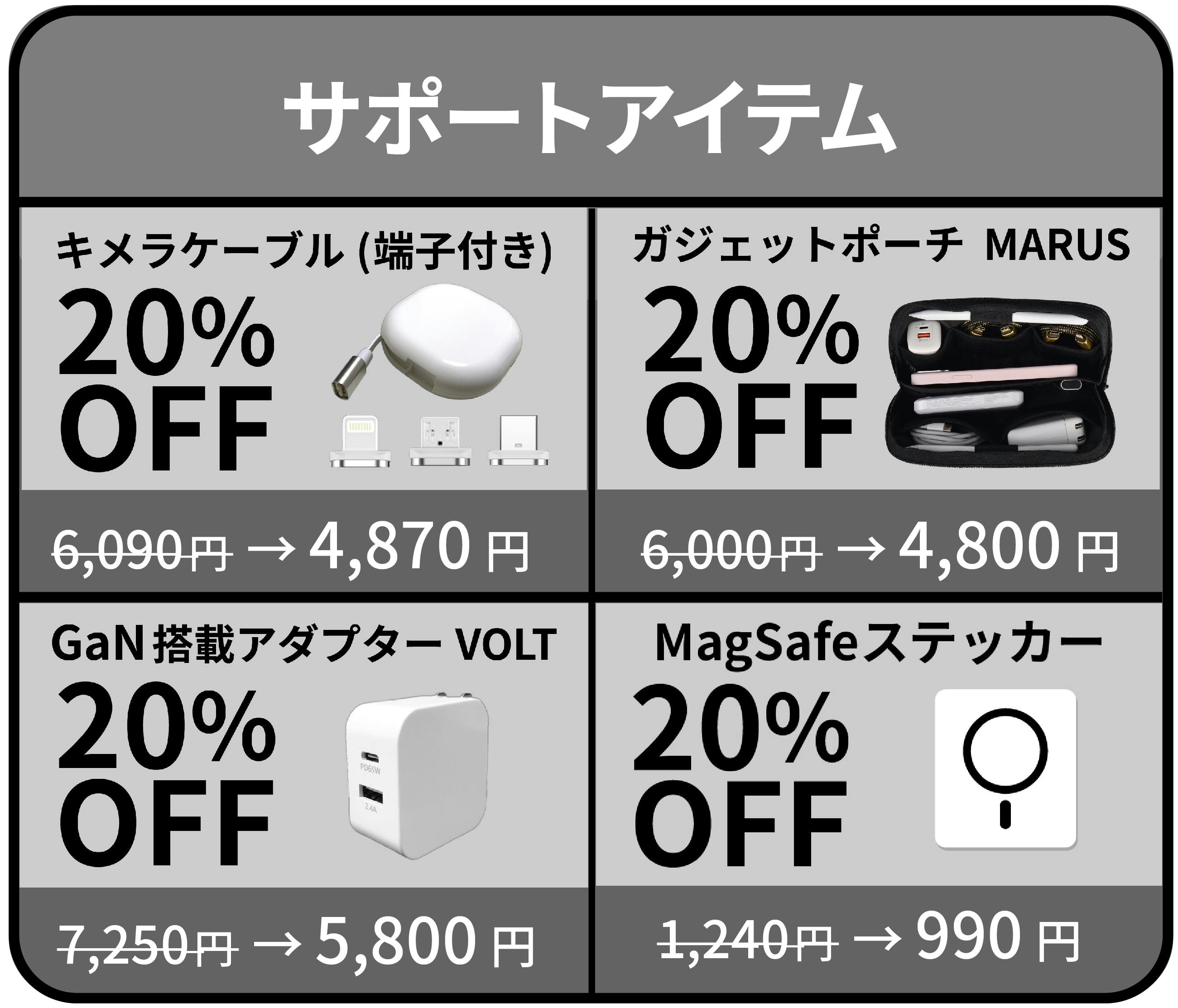 今後も、適正価格にてお客様へ更なる利便性を提供するために弊社独自規格での製品及び、革新的な商品の開発に努め、独創性のあるガジェットブランドとして努めてまいりますので、見守ってくださいますと幸いです。