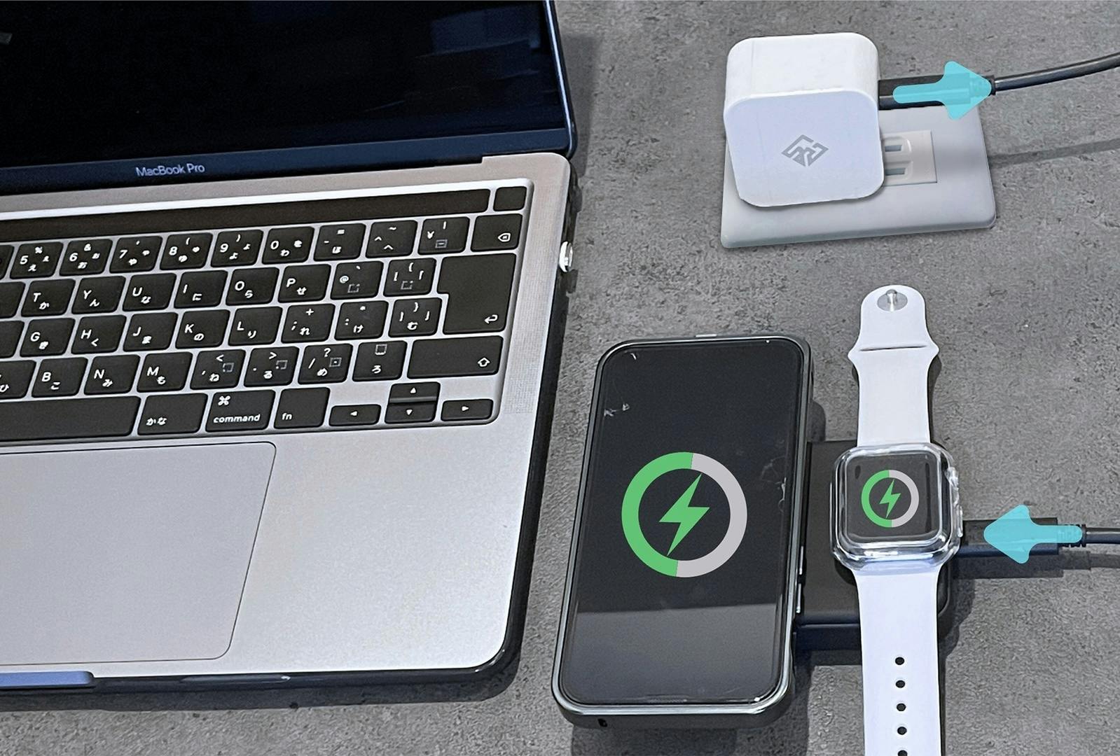 デバイスの充電には、最大3台同時充電に対応可能なハイエンドモデル。