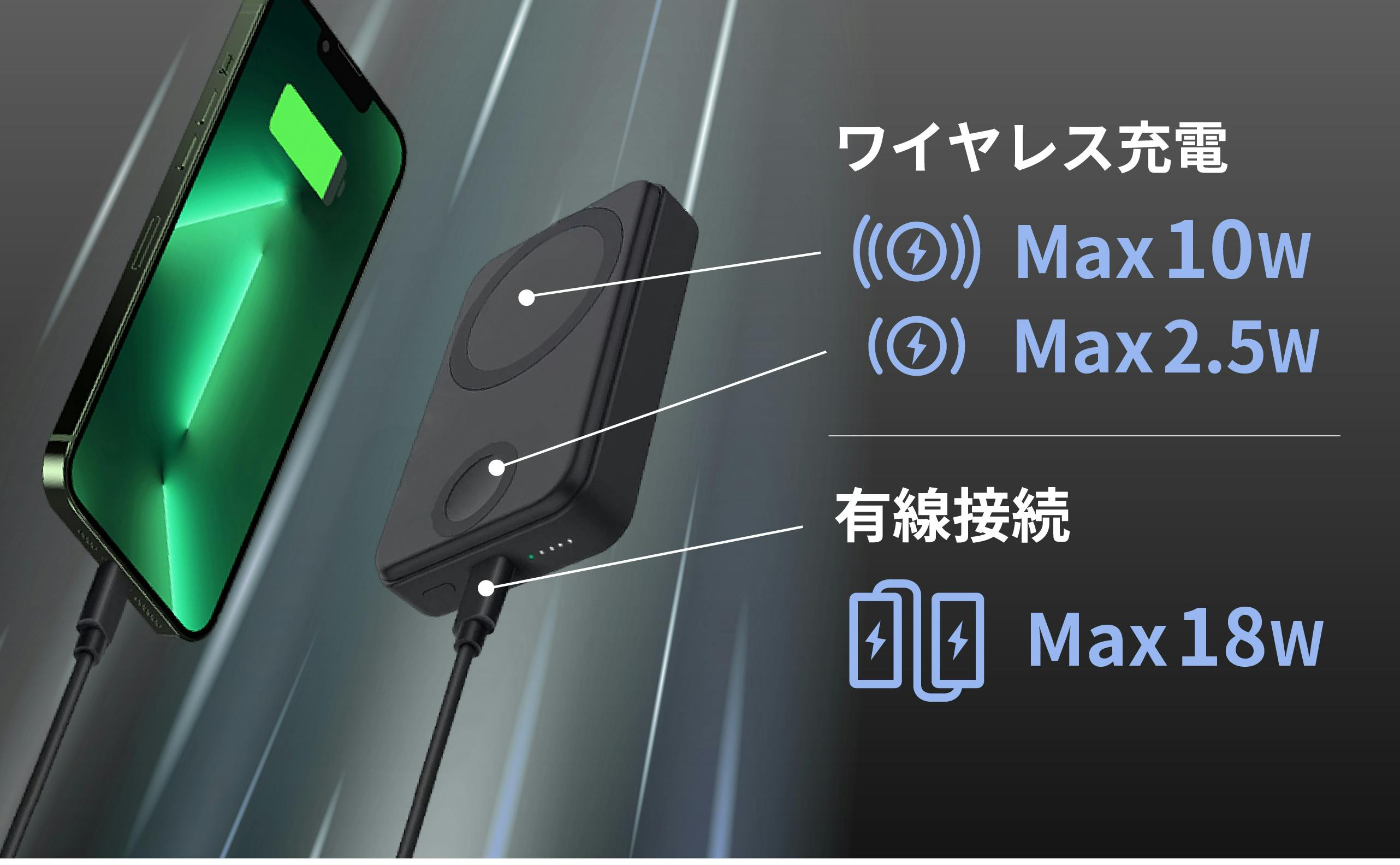 ワイヤレス充電では最大10W、そして有線では最大18Wの高出力で時短充電を実現。
