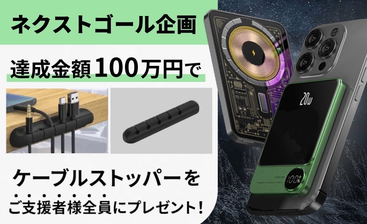 ネクストゴールを達成した際には、本プロジェクトの全ご支援者様に、「ケーブルストッパー」をプレゼントいたします。