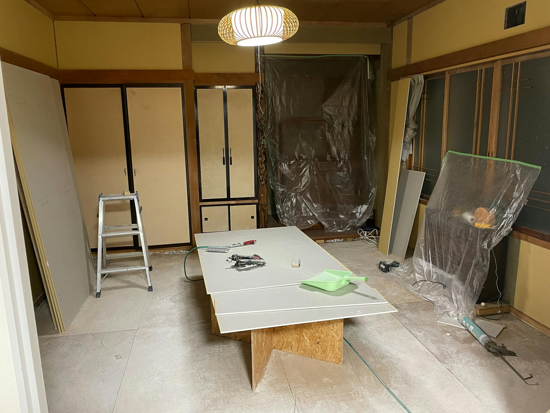そのあと、畳を剥がしたところにコンパネを敷き詰めていきます。