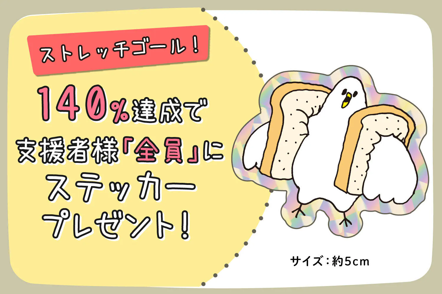 140%達成で「むちっ鳥ステッカー」をご支援者様全員にプレゼント♪
