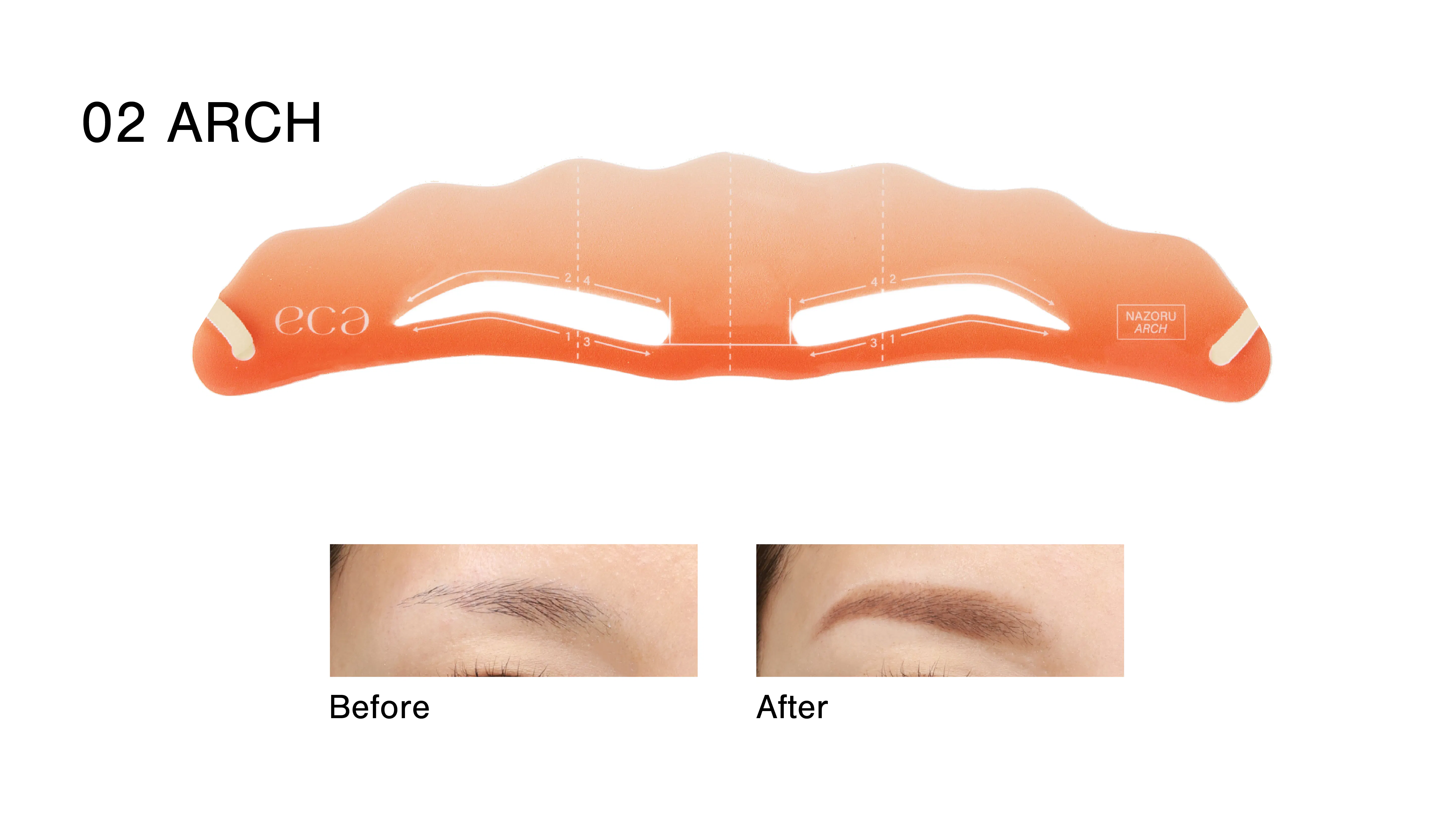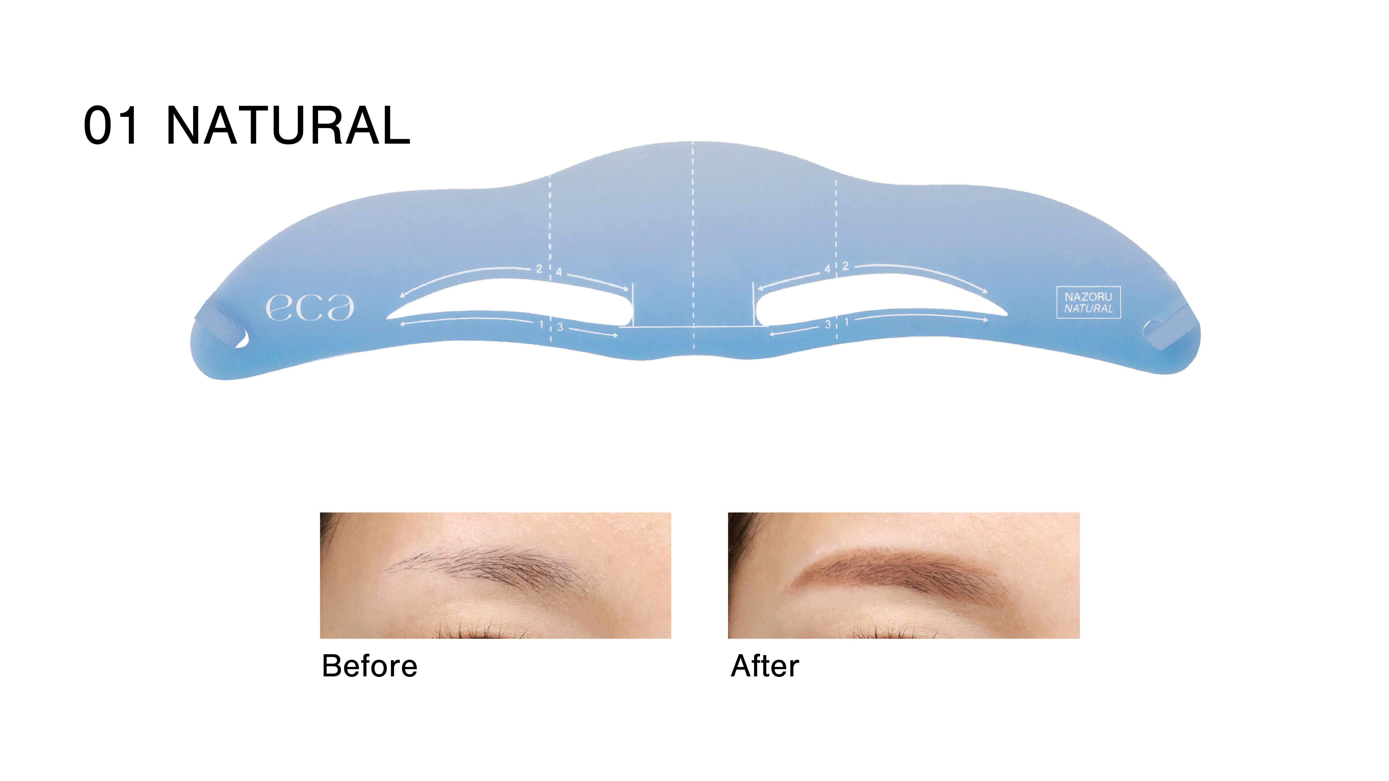 眉テンプレート『NAZORU』の眉メイクの仕上がりを引き上げ、「理想眉」へ導くアイテムとして、アウトラインを描きやすい⽑量と斜めカットの⾓度を1mm単位まで設計。