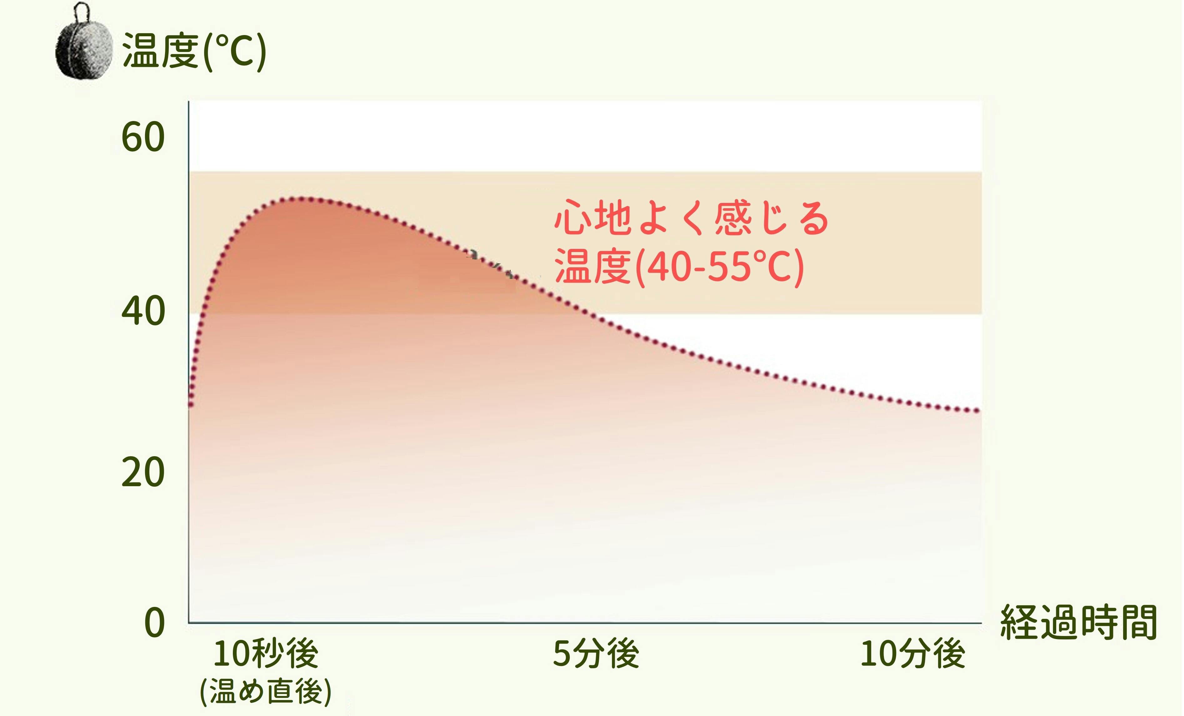 人が気持ちいいと感じる温熱温度は40~55℃。電子レンジから出して約5分間の間にEye Care Stoneを使用して下さい。
