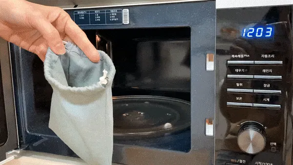 付属の保存袋に入れ、700Wで10秒を目安に温めて下さい。