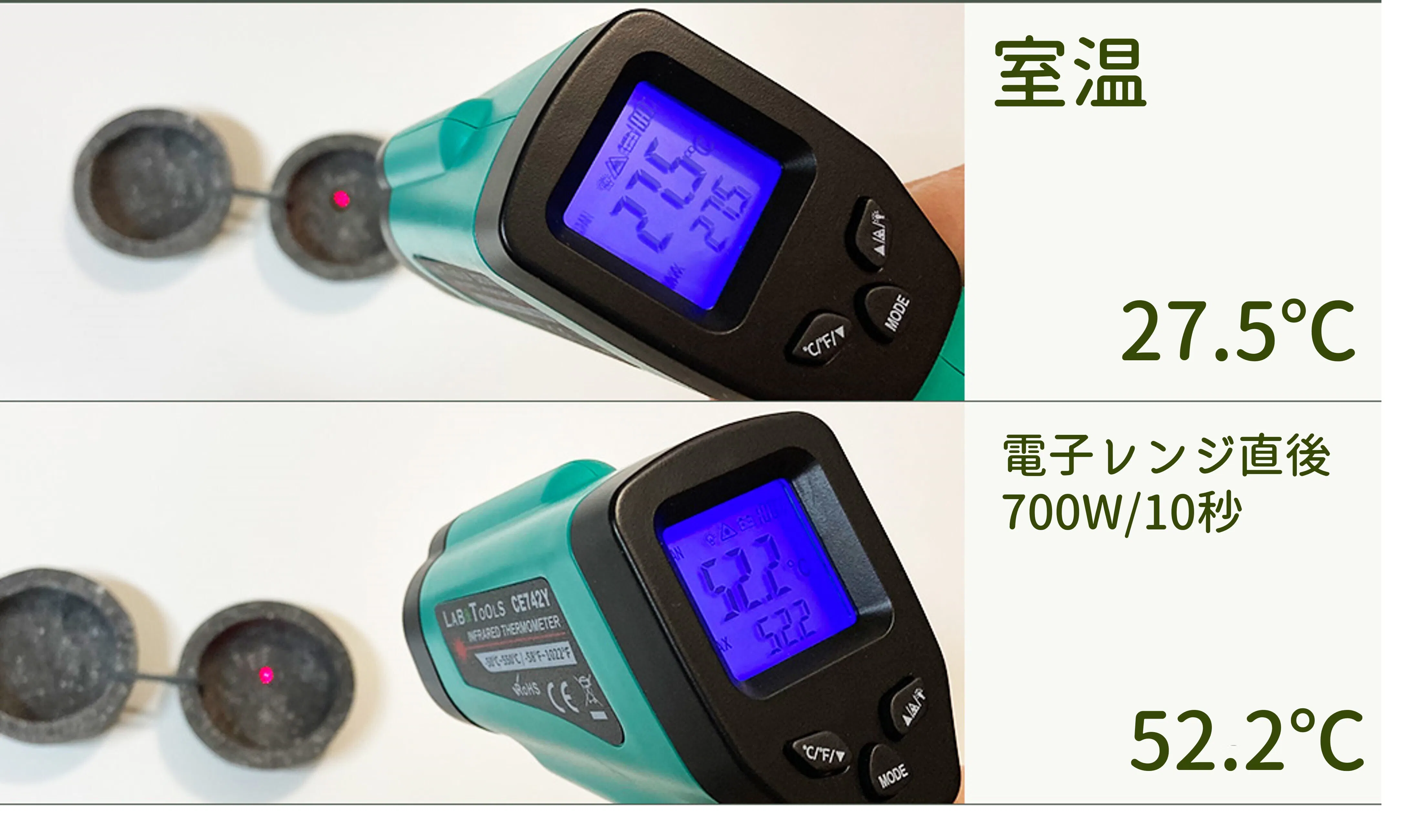 700Wで10秒温めると、内部温度が52.2℃まで上昇することが確認されました。