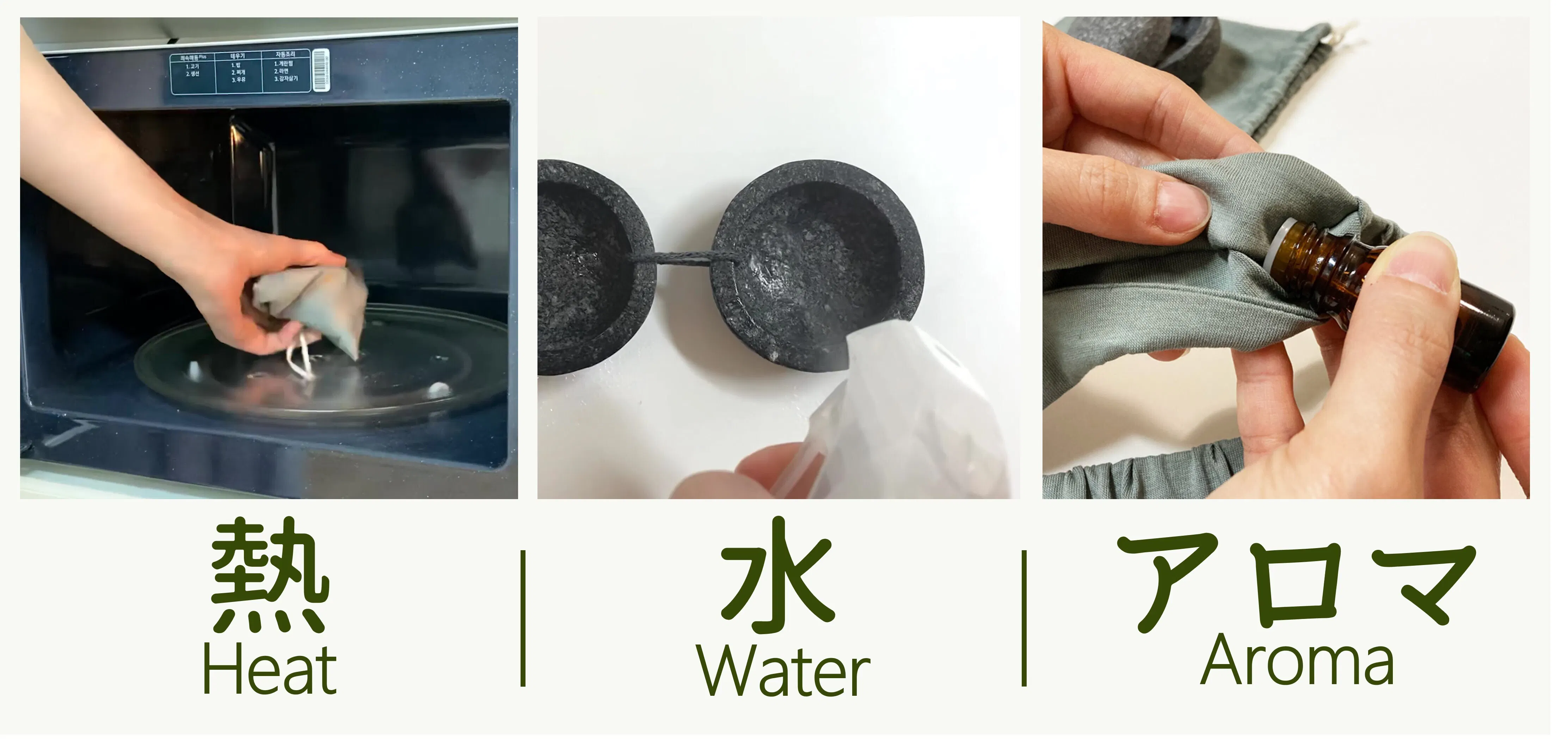 熱や水、アロマを加えるなど使い方のアレンジも多彩。より深い安らぎが得られます。