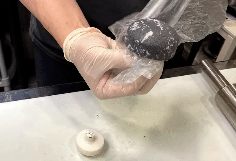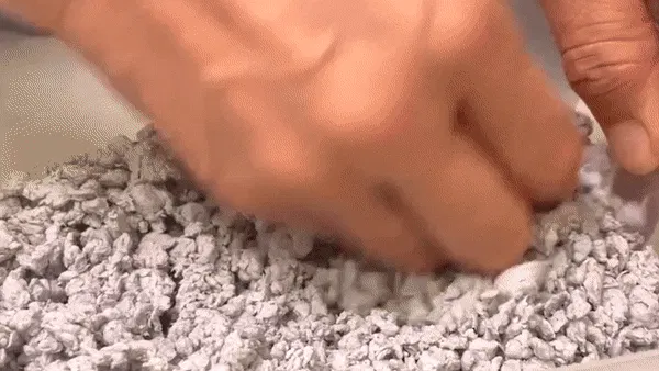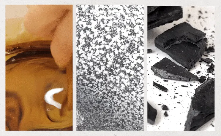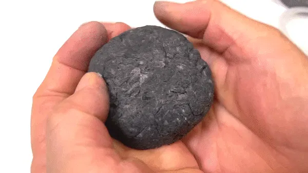2.紙材に漆、塩、炭を混ぜ、粒子の細かい生地を作る。