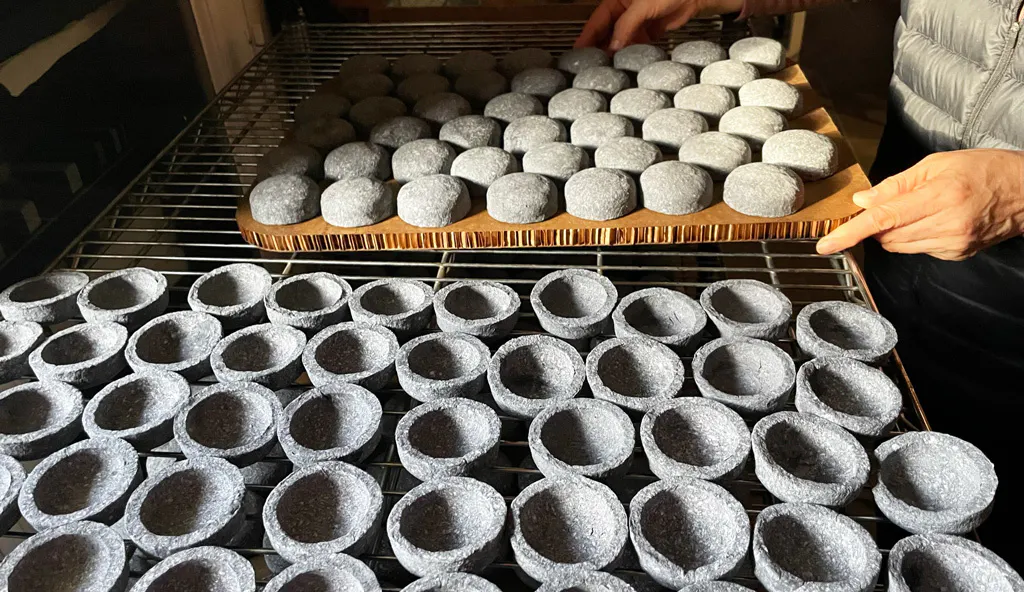 リサイクルした紙を主成分とし、漆、塩、炭といった自然材料のみで作られています。