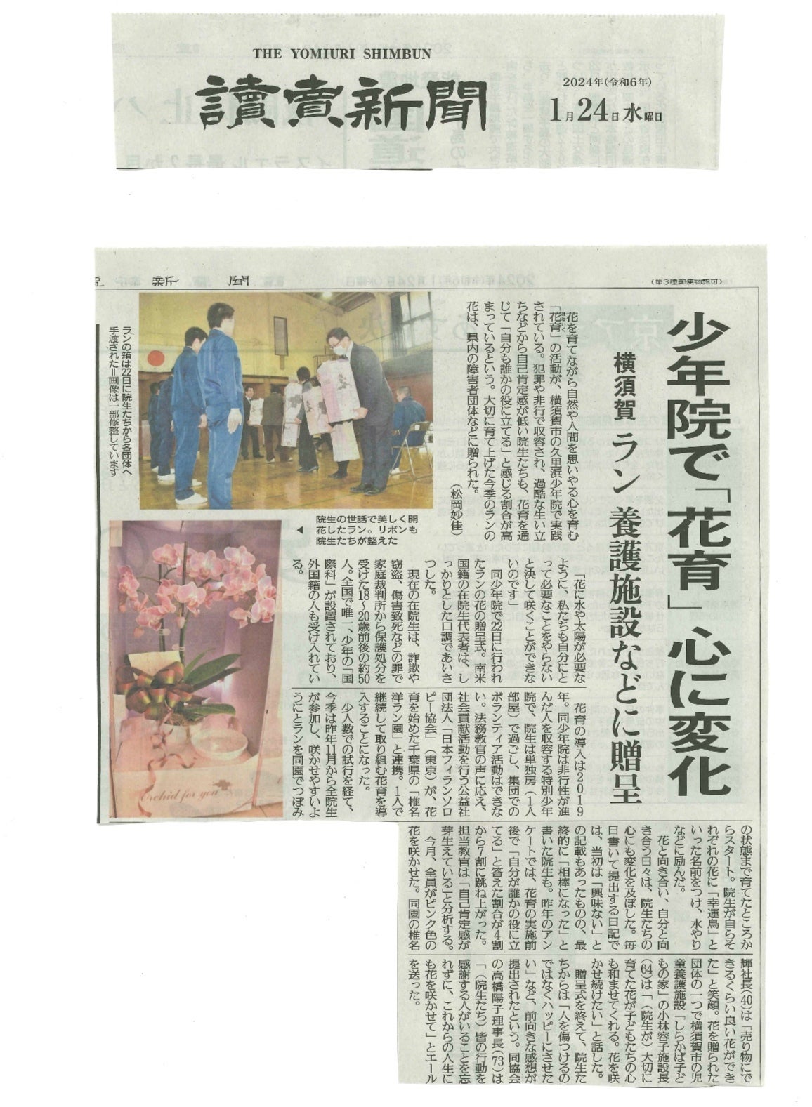 支援者の皆様今回はクラウドファンディングで集めた資金の使用用途である「花育」について、取材して頂きましたのでご報告申し上げます。久里浜少年院では毎年花育を実施しており、少年が育てた花を神奈川県のこども医療センター(難病を抱える子供達の病院)や児童養護施設、戦争などで避難してきた難民センターなどに寄贈しています。少年たちの更生カリキュラムも含んだ花育であり、誰かの為になにか役に立つという活動を通じて、少年たちの更生に役立ってほしいとの思いがあります。皆様からご支援頂いた費用は、小学校や少年院での実施資金(花材代)などに充てされて頂く予定でございます。どうぞ引き続きのご支援をよろしくお願い致します。↓少年が寄贈先に向けて書いたメッセージ