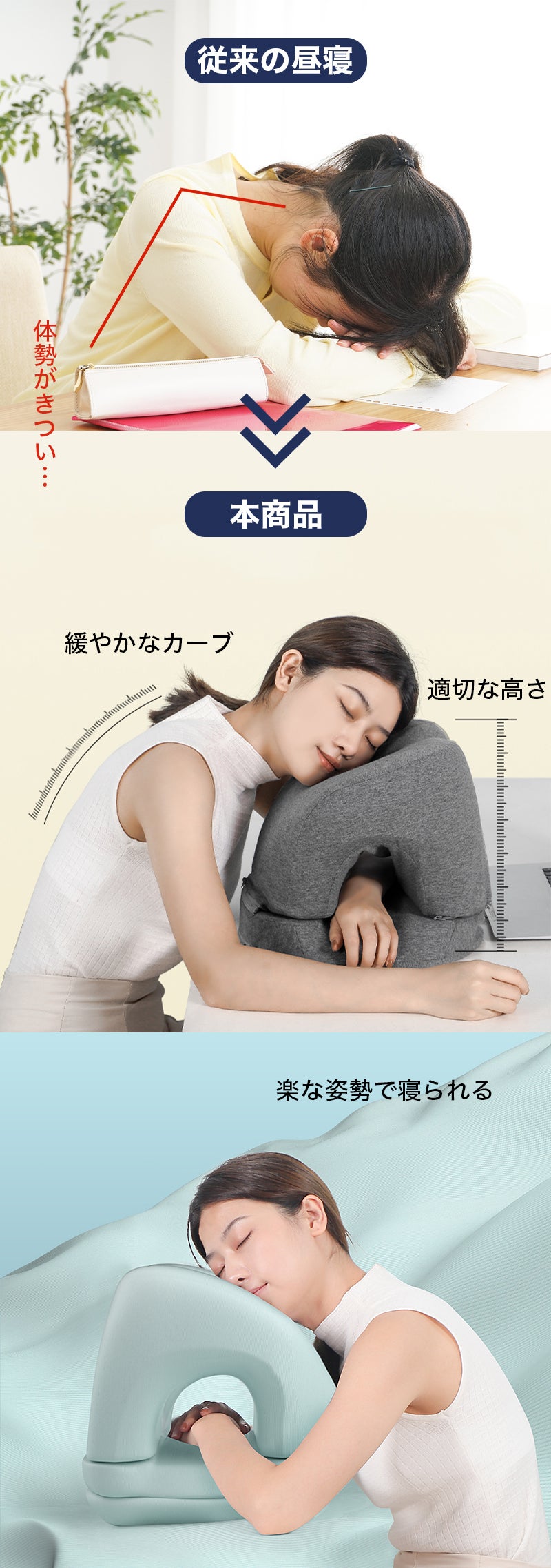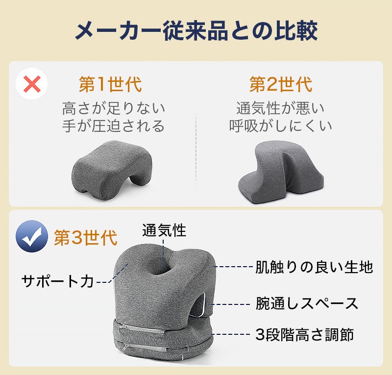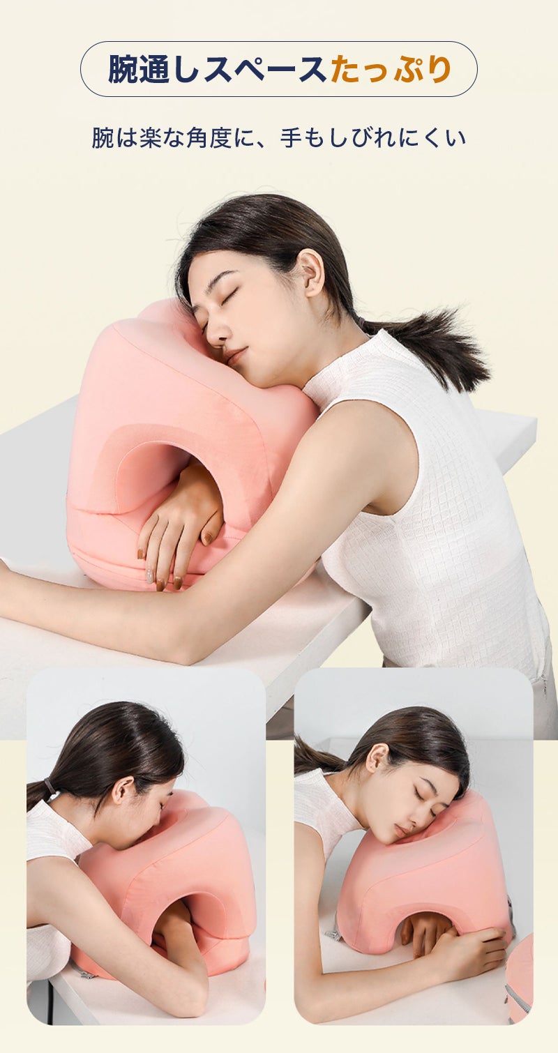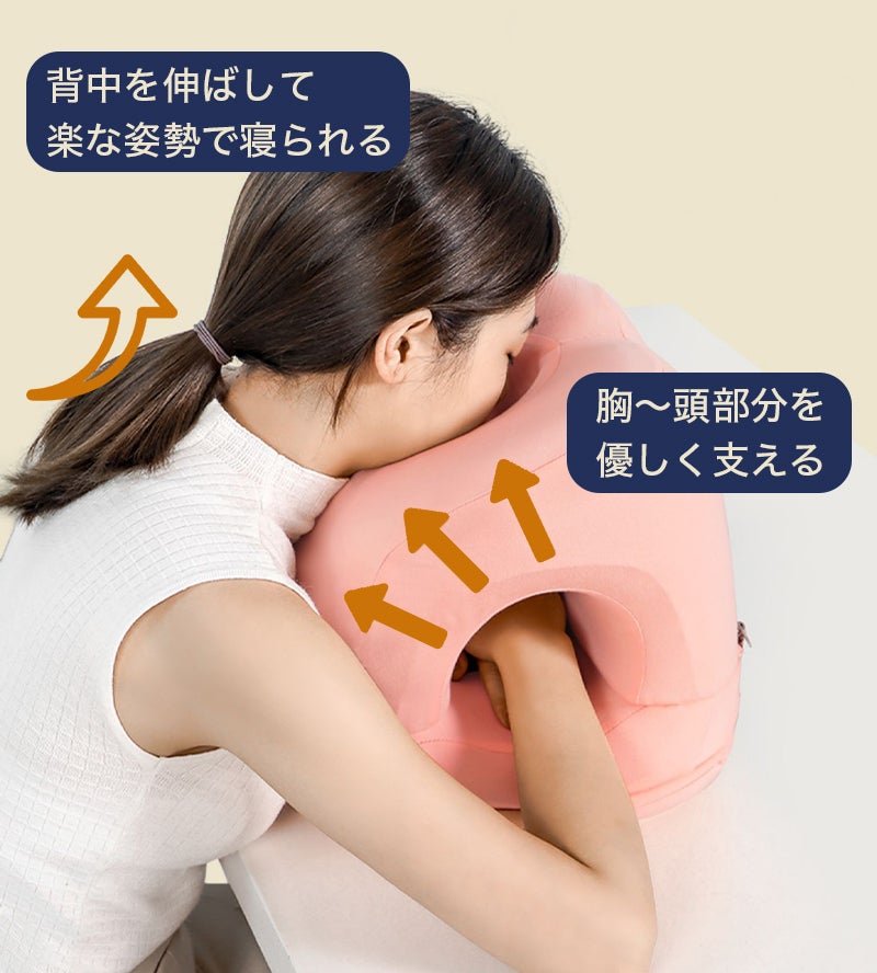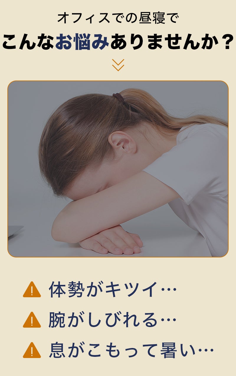 オフィスでうつ伏せ寝する時に起こりがちな腕の痺れや圧迫感といった困りごとを解決し、より快適な昼寝を楽しむことができます。