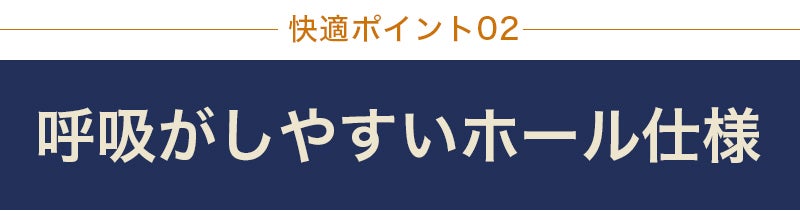 大きく空いているフェイスホールが鼻や口元を覆わないため、昼寝中でも自然な呼吸を続けることができます。