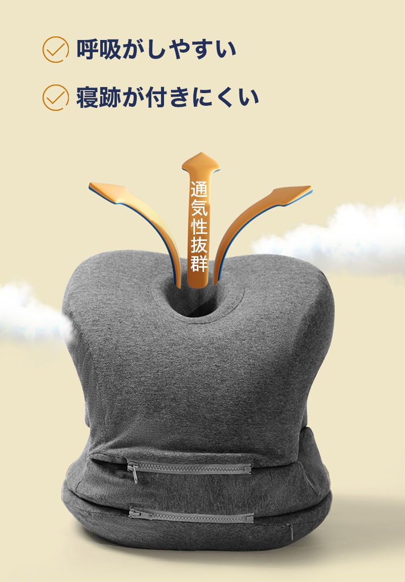 また、フェイスホールがあることで、仮眠中に顔面へのプレッシャーが少なく、メイクが乱れる心配もありません。