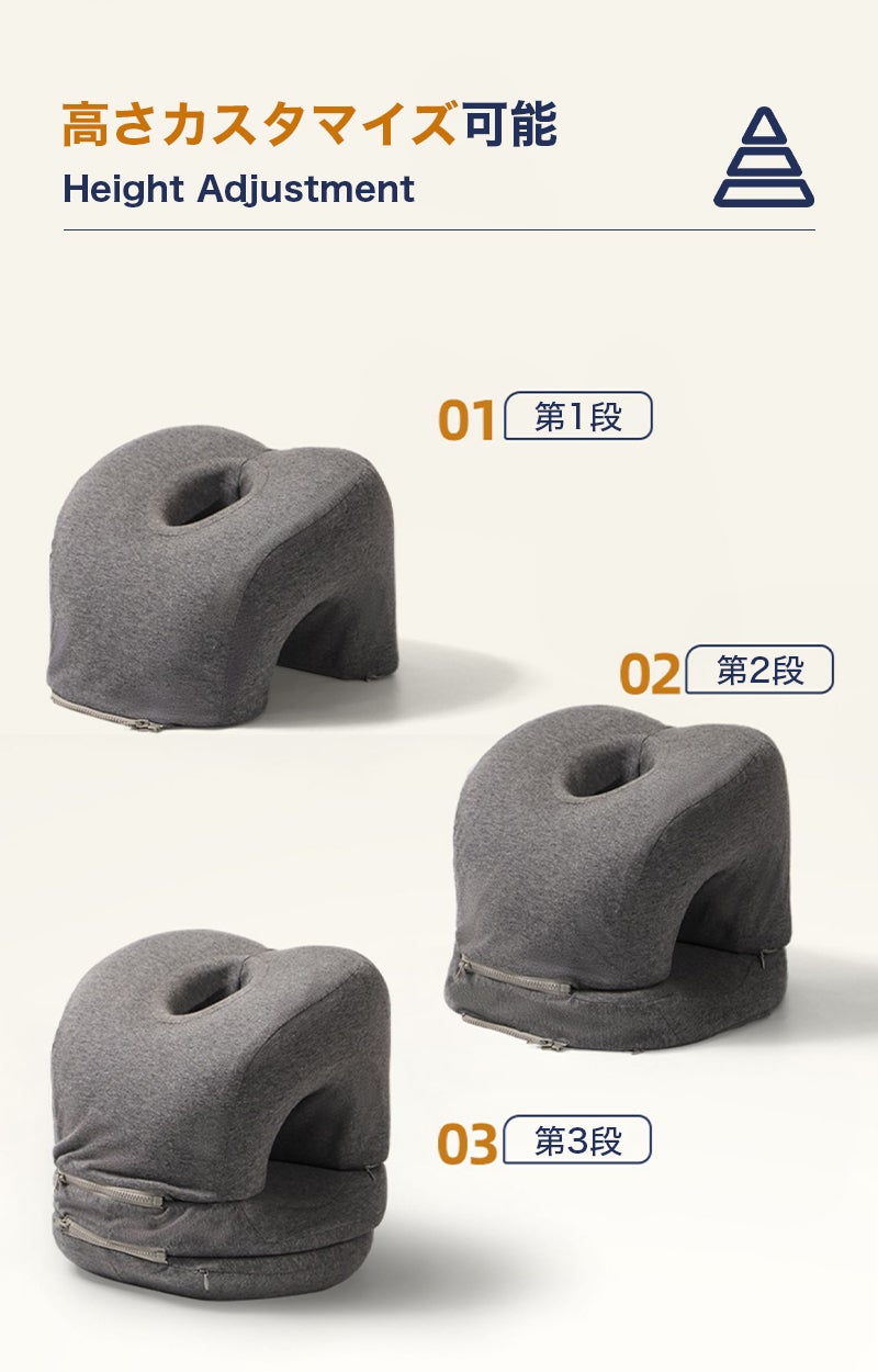 3段階の高さ調節機能で、あなたの体型や寝姿勢に合わせたサポートを提供します。