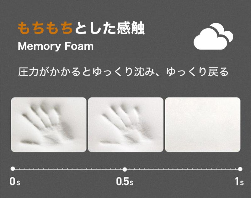 顔にフィットしながら、安定して支えることができるサポート力を実現するため、本体には低反発メモリーフォームを採用しました。