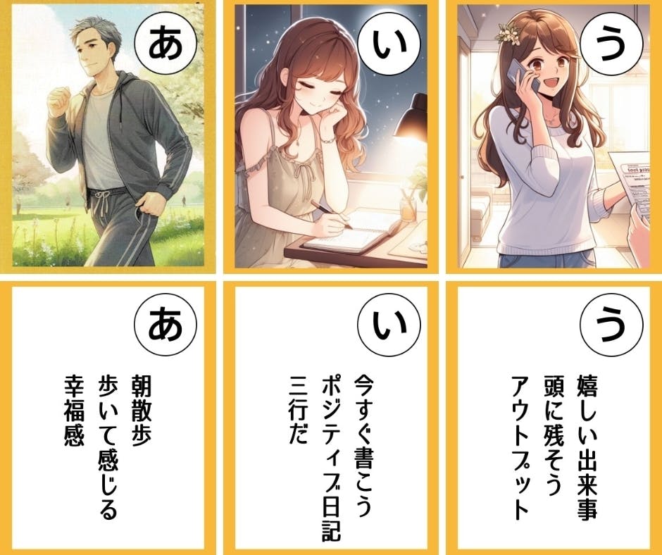 嬉しいことは記憶に残すためにアウトプットする。そう[う]のカルタは教えてくれているのです。