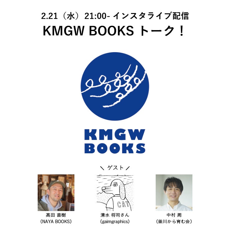 インスタライブにて、「KMGW BOOKSとグラフィックデザイン」をテーマに、グラフィックデザイナーの清水将司さんと、髙田、中村がゆる〜く語り合います。