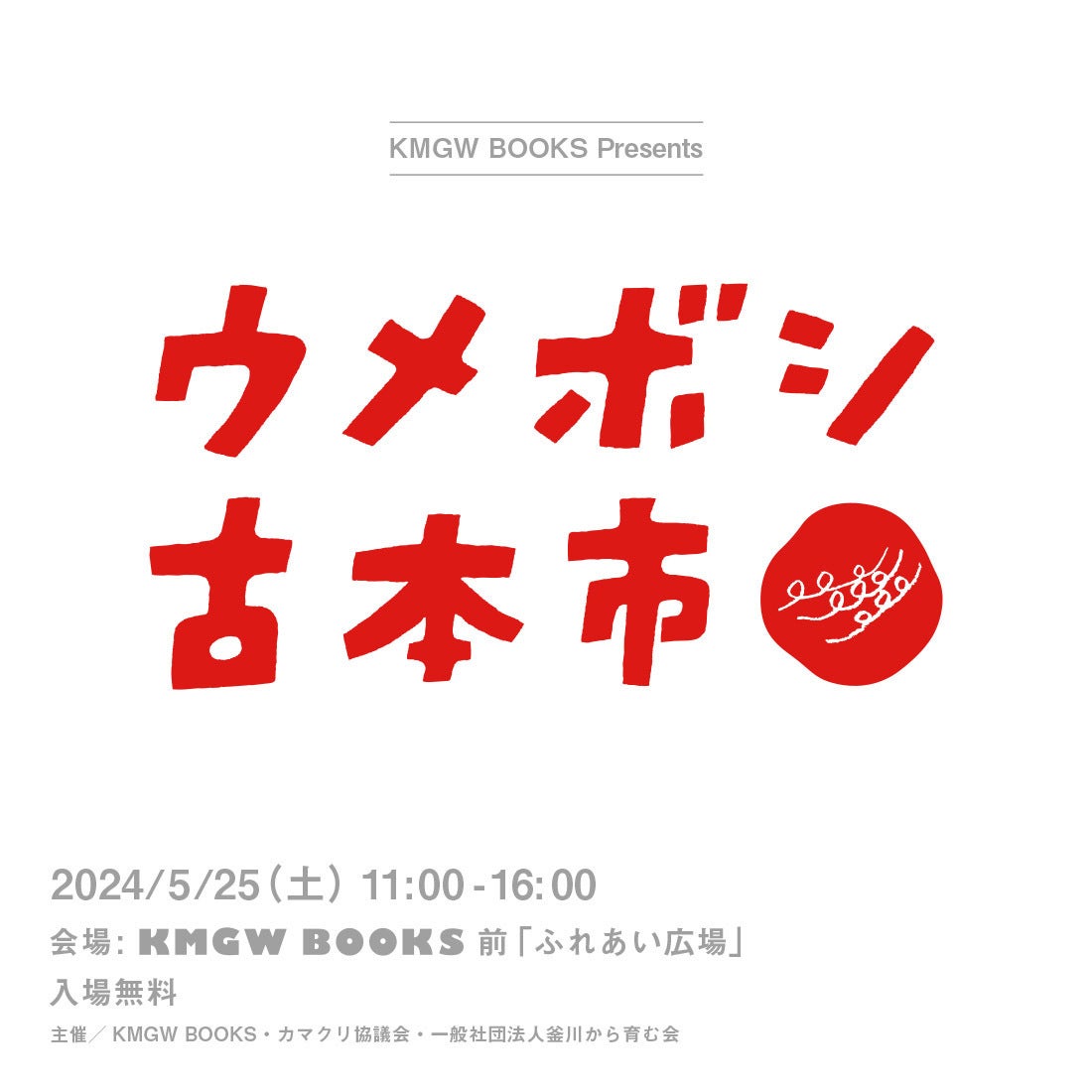 5/25(土)にKMGWBOOKS前のふれあい広場にて、「ウメボシ古本市」を開催します!