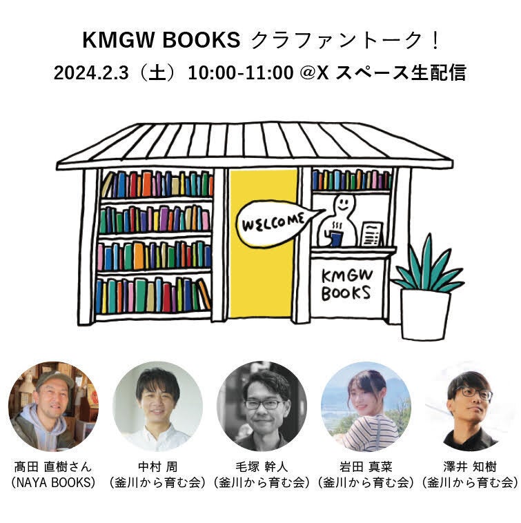 Xスペースにて、毛塚、髙田、中村で、「KMGW BOOKSとまち」をテーマに、こんな場をみんなで目指したい!などなど、オープン後のワクワクする夢を語り合います!お気軽にご参加いただけると嬉しいです◎▽カマクリ!X(旧Twitter) アカウントはこちら!https://twitter.com/kama9rischool▽Xスペースはこちら!https://twitter.com/i/spaces/1RDGllwArrjGL