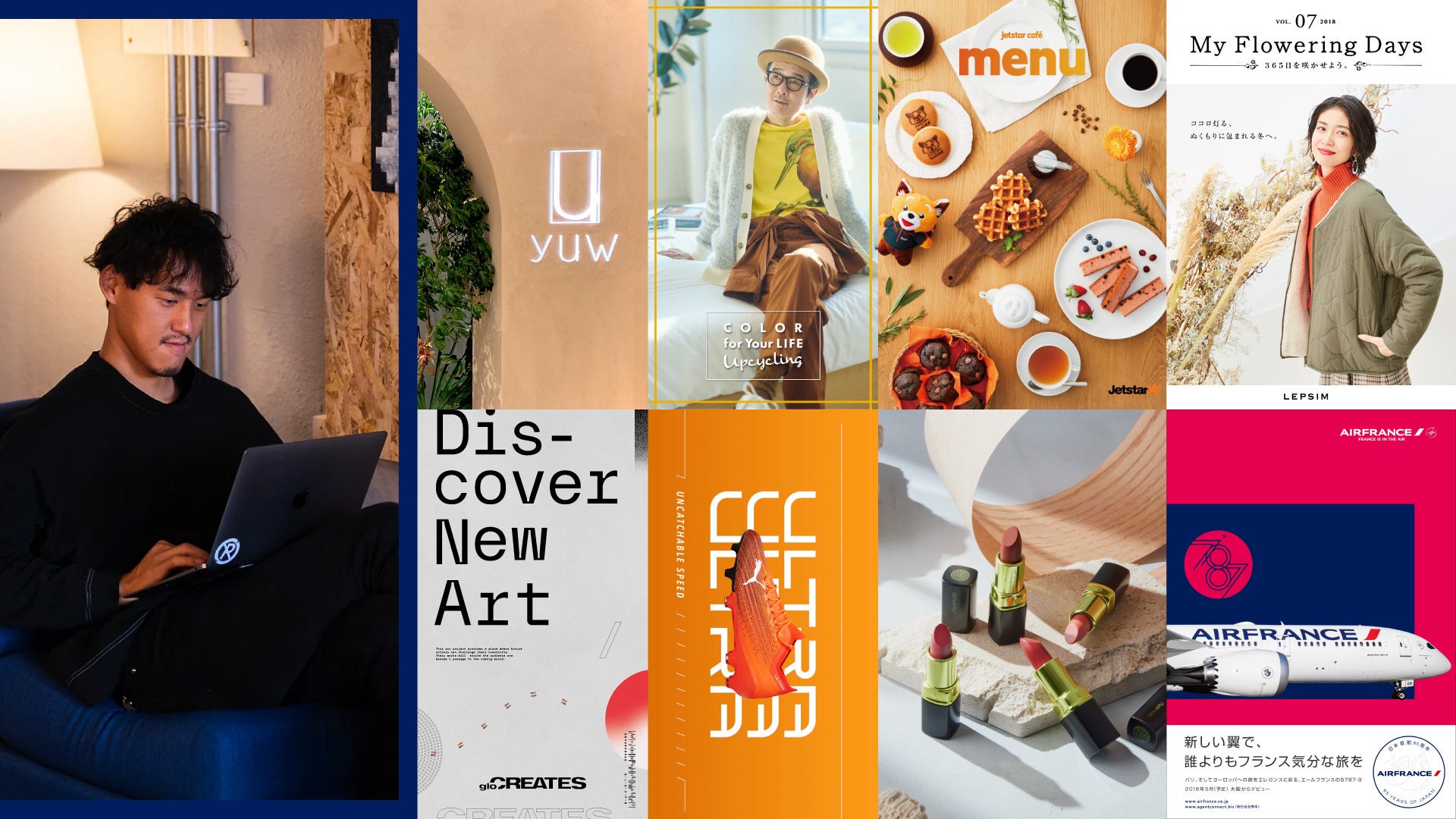 航空会社からスポーツ、ファッションまで、幅広いジャンルの広告制作とアートディレクションを担当する。