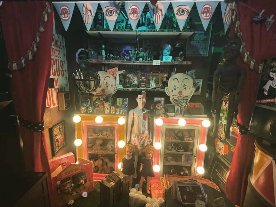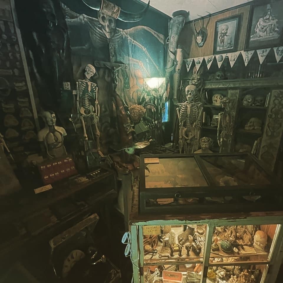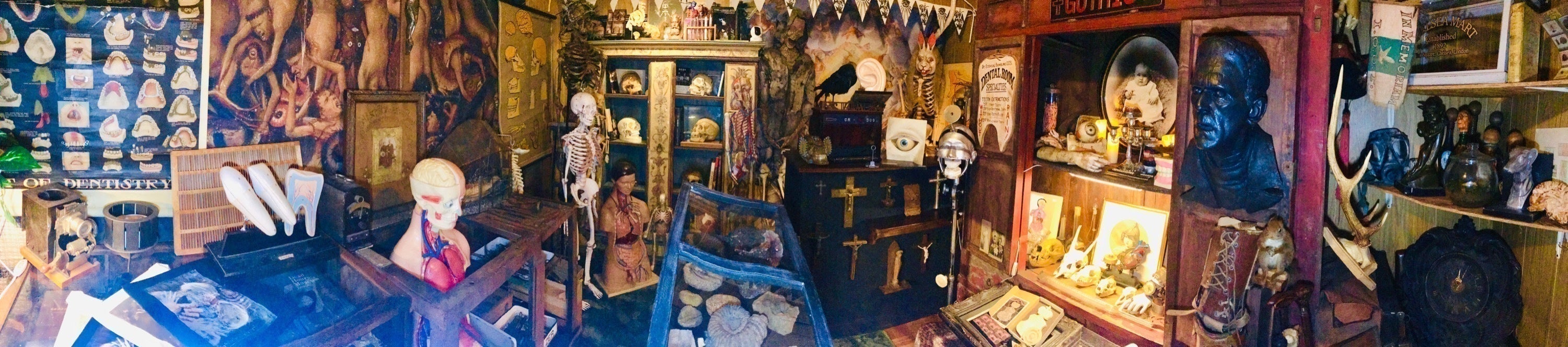 店内はサーカスやハロウィン、不思議の国のアリス、ゴシックホラー、魔法、解剖学(医療模型の群れ)、廃墟の遊園地、ロリータファッションなどが融合したファンタジー映画の中にいるような空間。雑貨やアンティークの販売だけじゃなく、ファンタジー関連の書籍も置く予定です。読書や映え写真の撮影にも最適です!