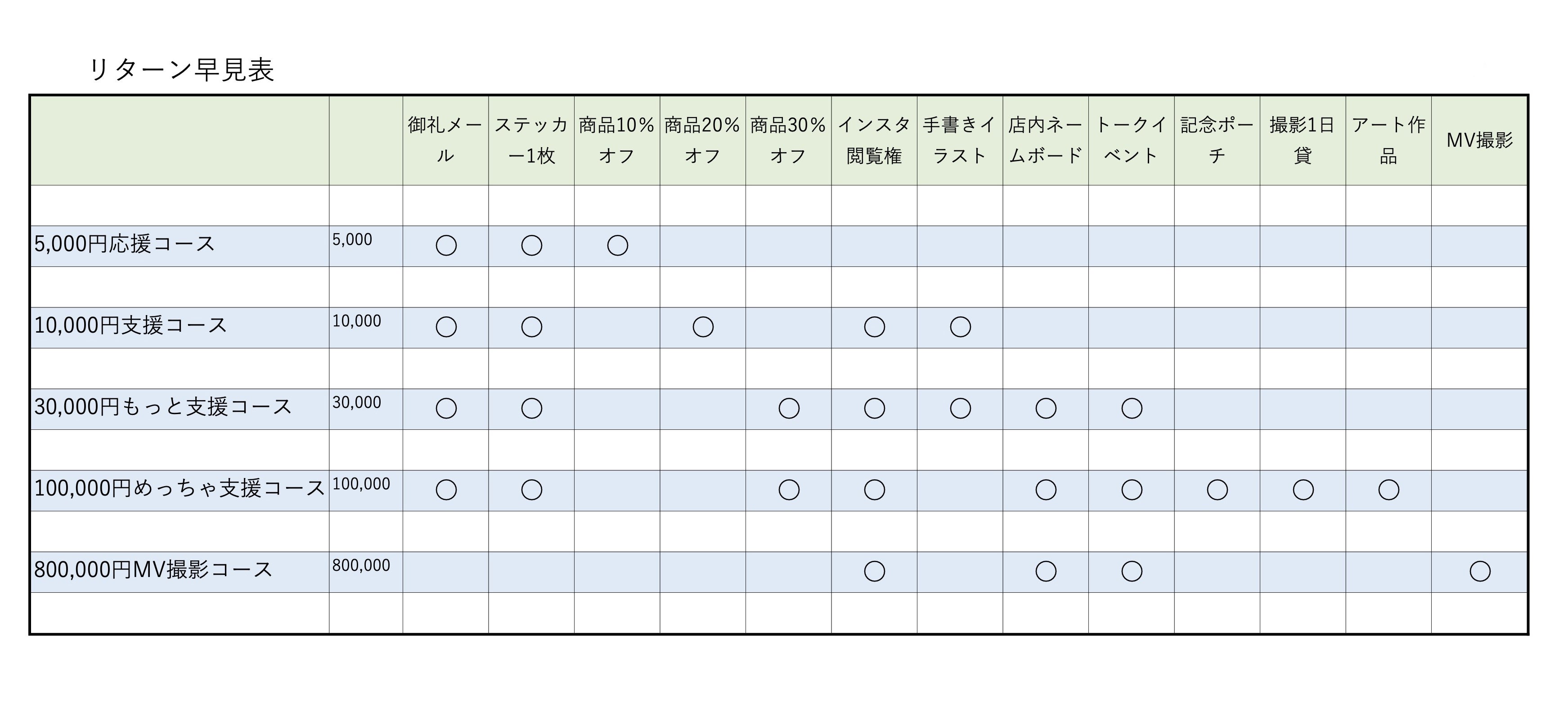 ※リターンにあるイベントの定員数が10名になっていますが30名に増やしました。