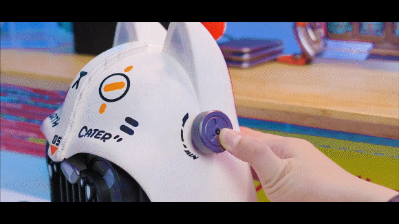 4、「猫」の耳&目からリズムに合わせて異なる色のライトを放ち、視覚と聴覚の絶好体験。