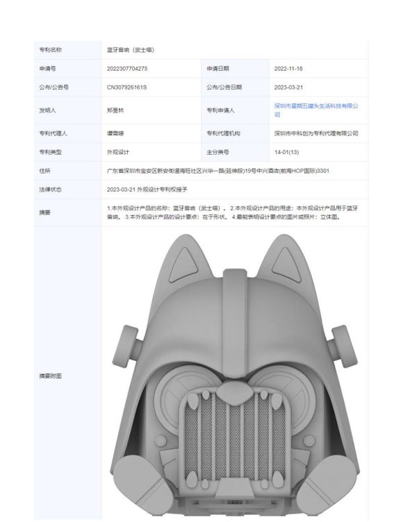 「金曜ワイヤレススピーカー」特許番号:2022307704275