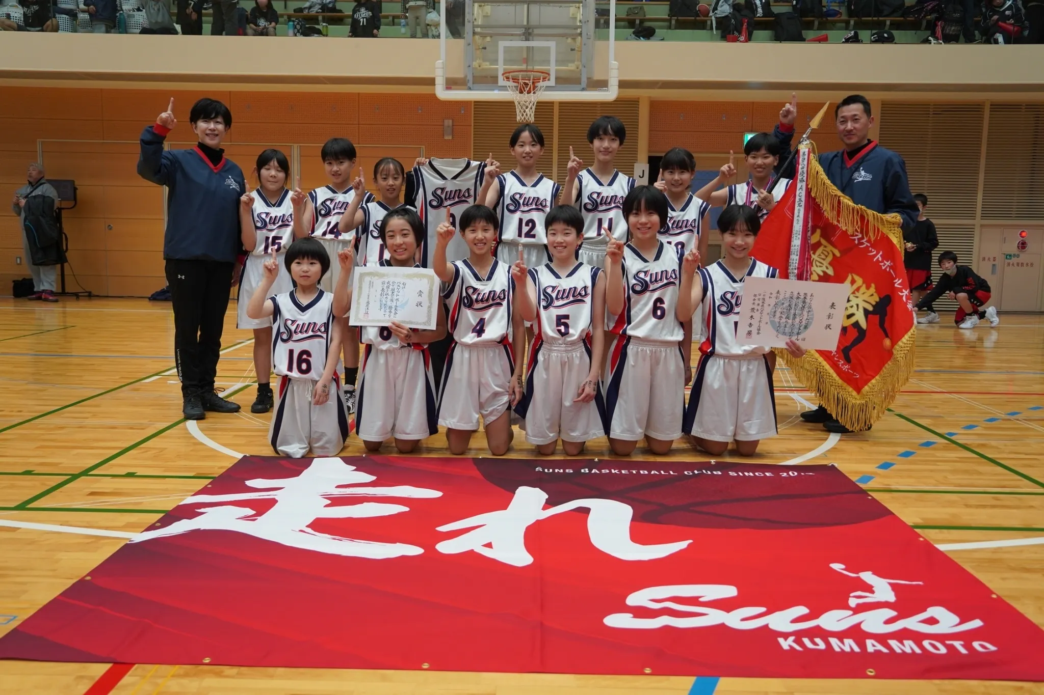 そして先日行われた第49回熊本県ミニバスケットボール大会で見事に念願の全国大会出場をつかみ取ることができました。チームとしても創部以来、男女とも成し遂げられなかった「熊本県NO.1」を達成したしました!!子どもたちに関わるたくさんの方々のお陰で全国大会に出場できることに感謝の気持ちを忘れず、今までの経験を活かし、全国の大舞台で十分に発揮してほしいと願っています。