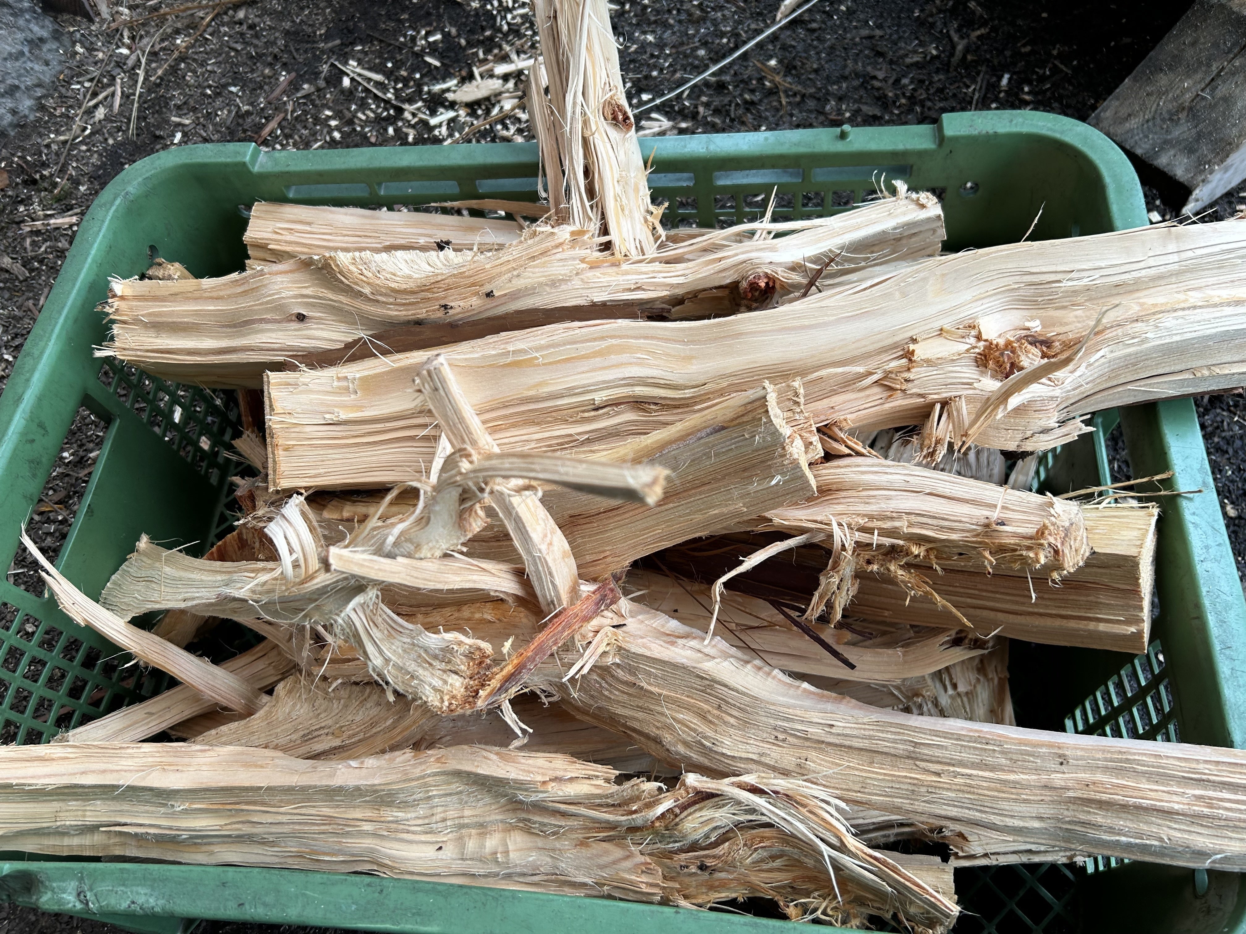 結果は、想定以上の量がとれ、しっかりと乾燥していた保管状態や幹の多さが要因であるとおっしゃっていました。ひとまず、安心しました、、。