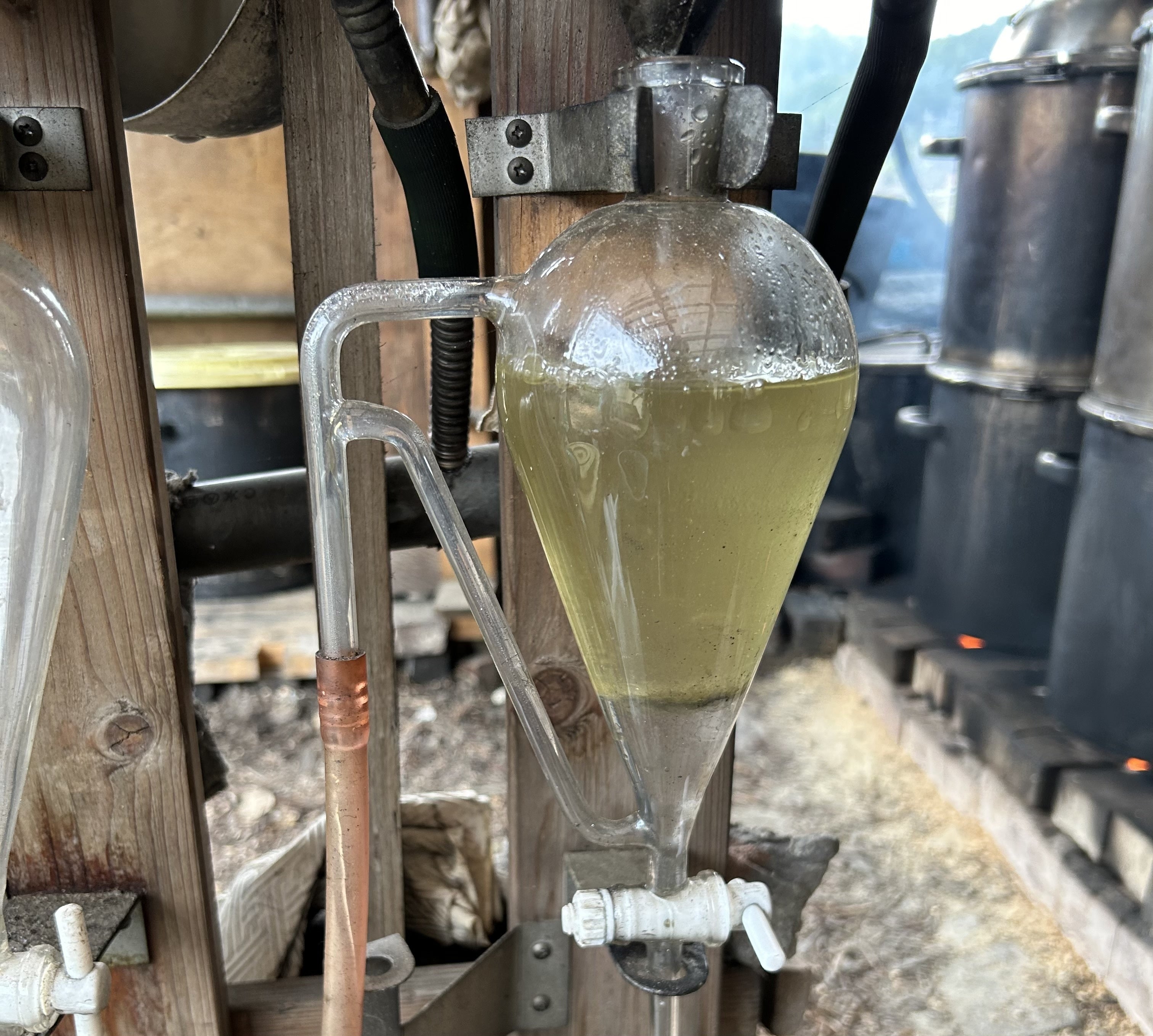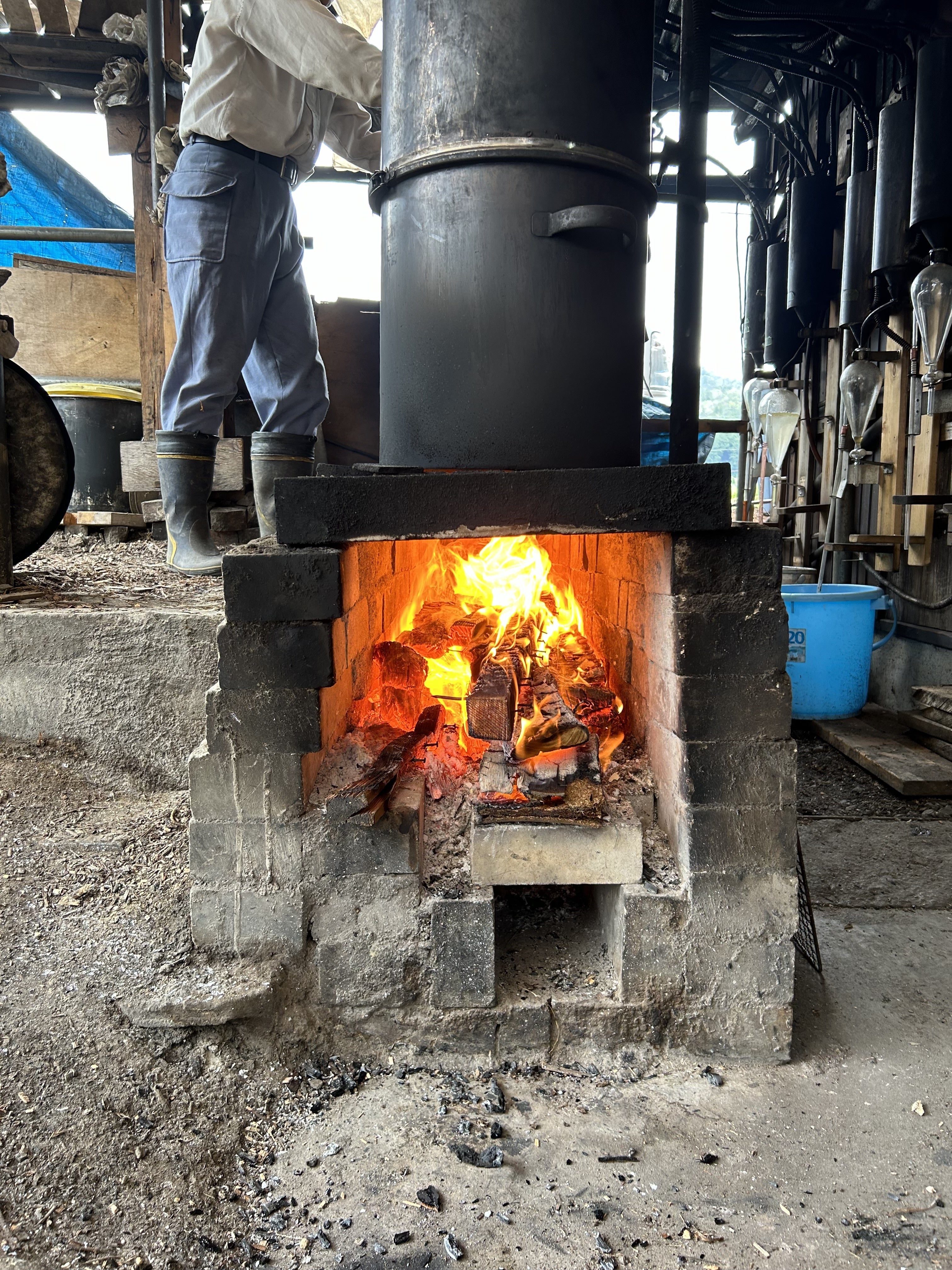 職人の方とお話しする機会があり、この蒸留でとれるエッセンシャルオイルとハーバルウォーターの量は、ひとつひとつの木によって異なるのだそう。まさに、自然を相手にしており、想定している量がとれるのかドキドキしていました。