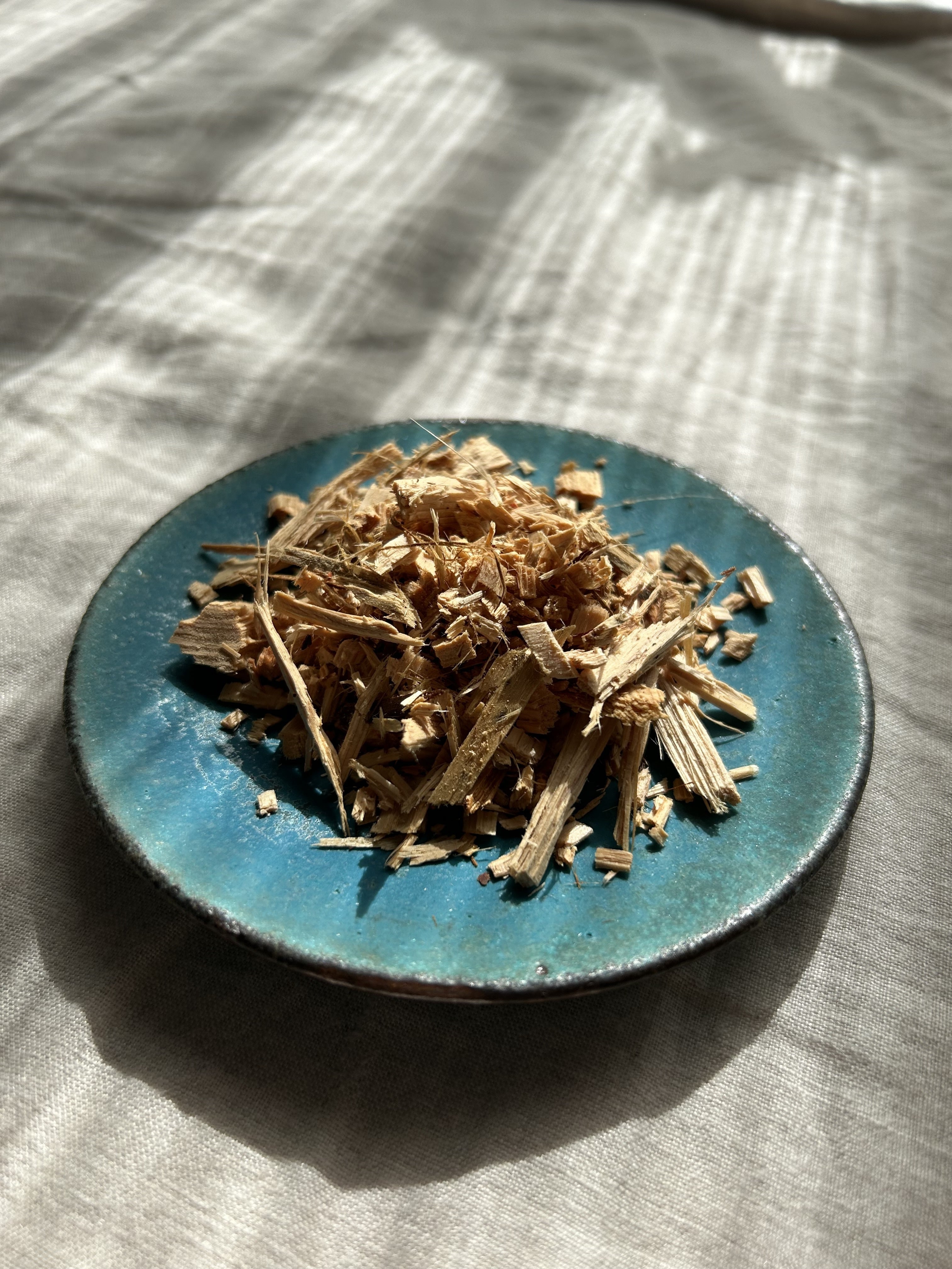 それと、、、木材チップも同封しております。実際に同封しているチップでオイルを抽出いたしました。木材チップ自体も非常に良い香りがします。ぜひ、実際に木に触れてみてください。木のあたたかみを受け取っていただけますと、大変嬉しく思います。