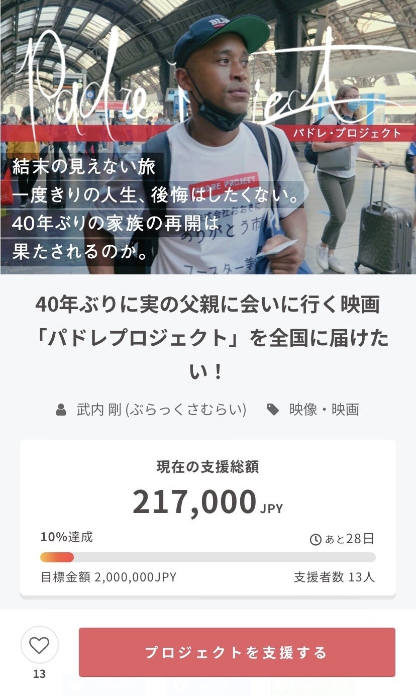 『40年ぶりに実の父親に会いに行く映画「パドレプロジェクト」を全国に届けたい!』の起案者、武内剛と申します。